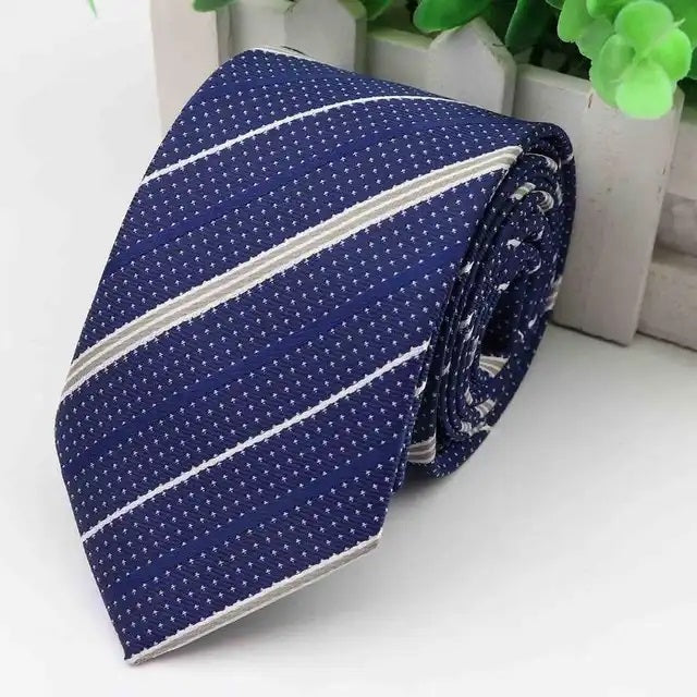 Unleash your inner style with our 6cm Blue and White Dotted Stripe Tie! Made with high-quality polyester, this tie adds a touch of sophistication to any outfit. Stand out from the crowd and make a statement with this versatile and fashionable accessory. Upgrade your wardrobe today!
