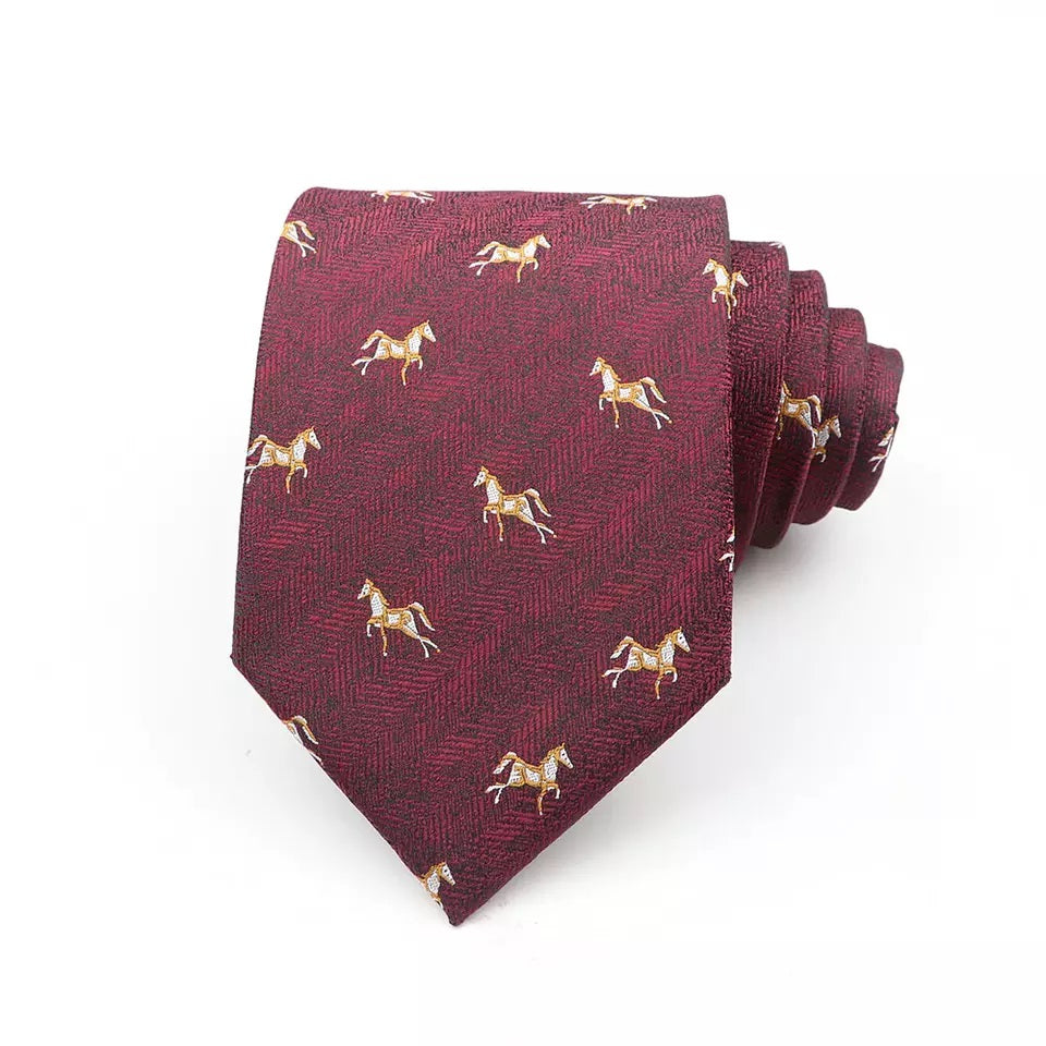 Add the perfect touch of sophistication to your look with a 8cm Burgundy Tie with Horses. Crafted from high-quality fabric, this tie is sure to make a statement. The bold burgundy background and horse pattern provides a modern twist on a classic design, making it a timeless accessory for any occasion.