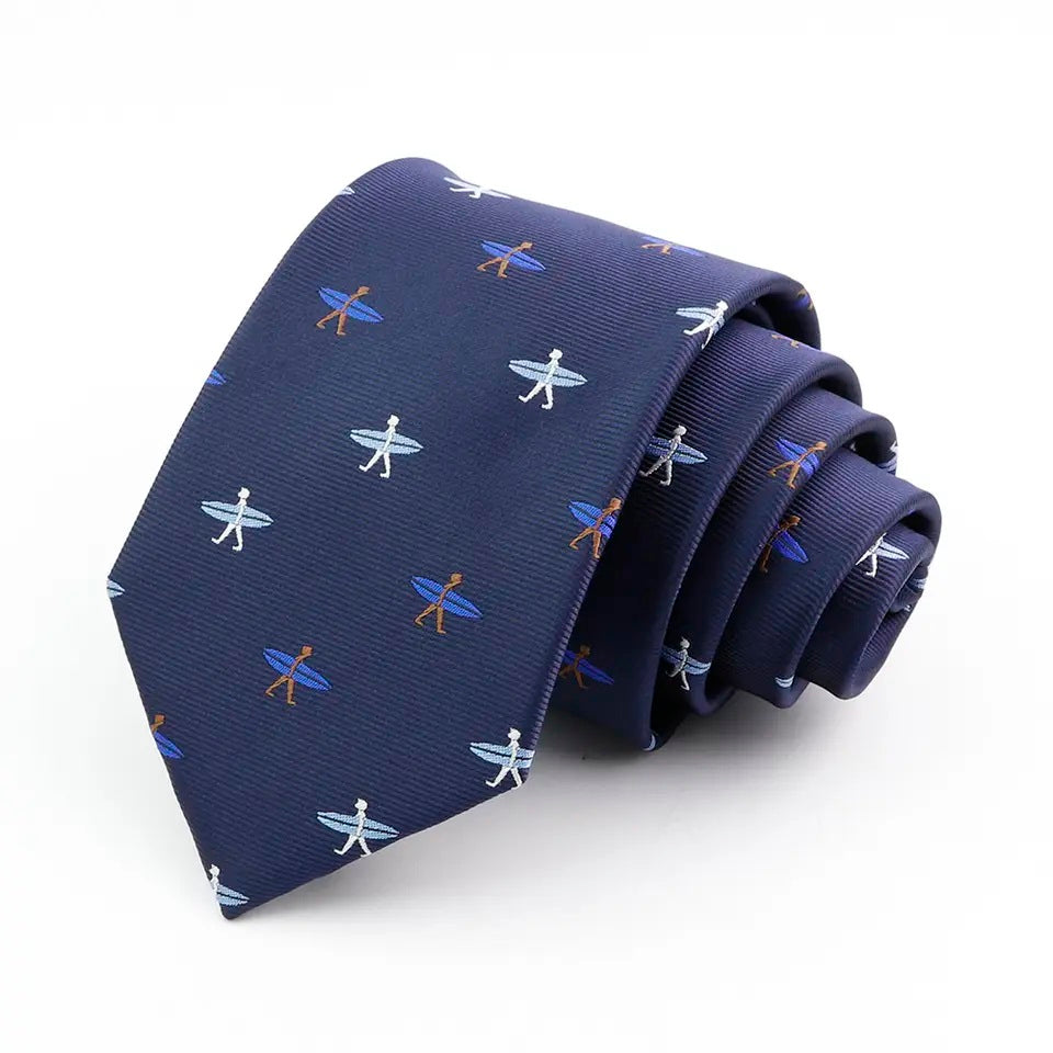 8cm Classic Blue Woven Surfing Board Print Tie