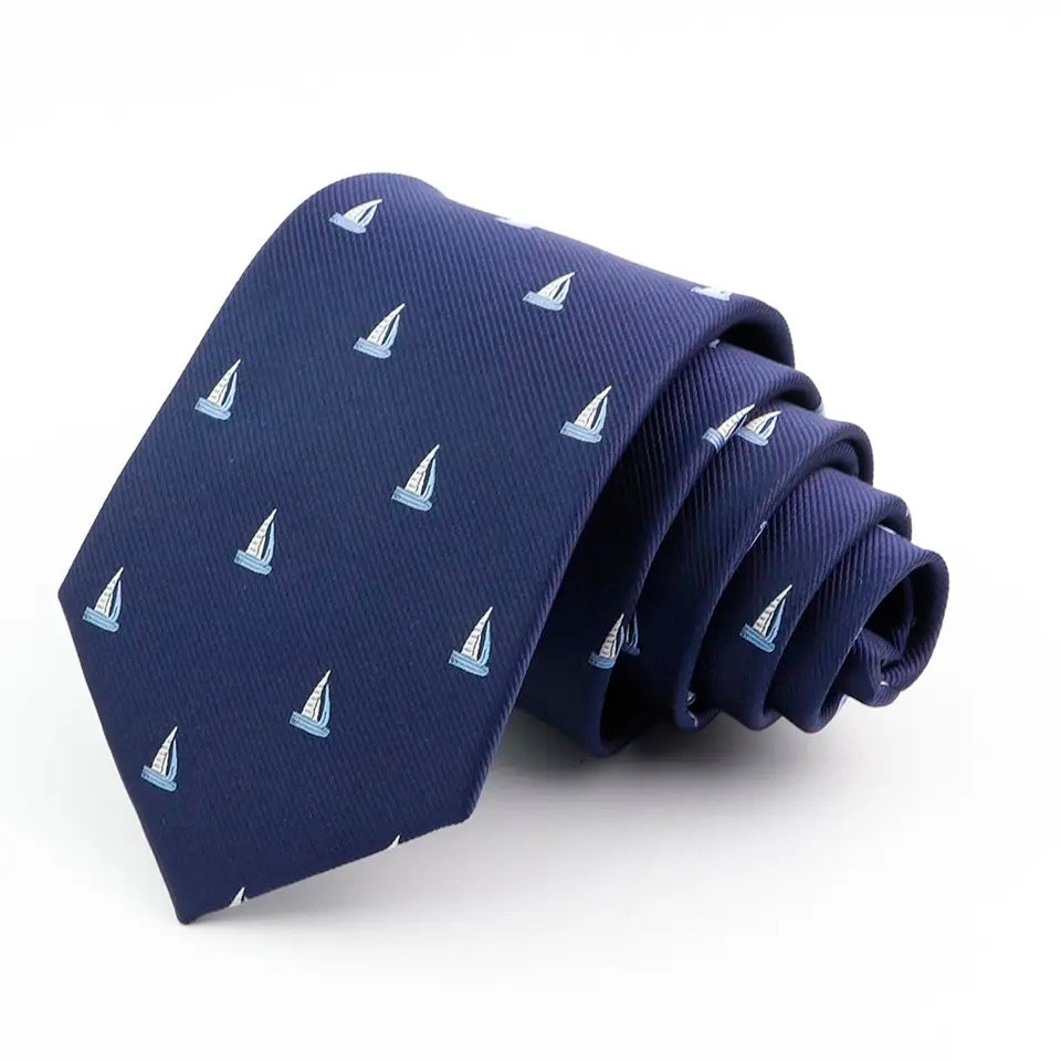 8cm Nautical Sailing Boat Print Tie