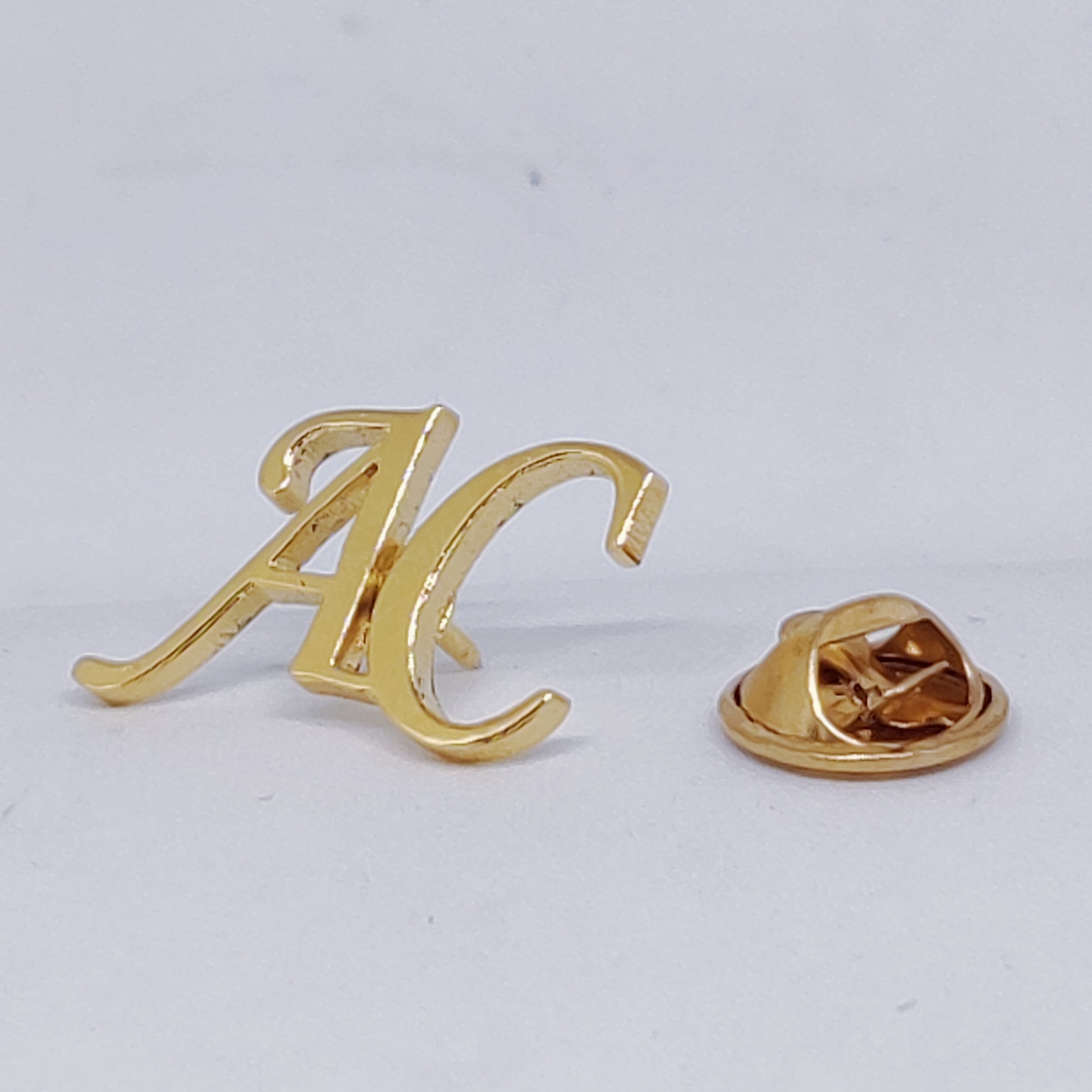 Wear your initials proudly with this stylish lapel pin! Crafted with brass gold plating, this lapel pin will bring elegance and sophistication to any outfit. Make a statement and show your style with this chic and timeless piece.