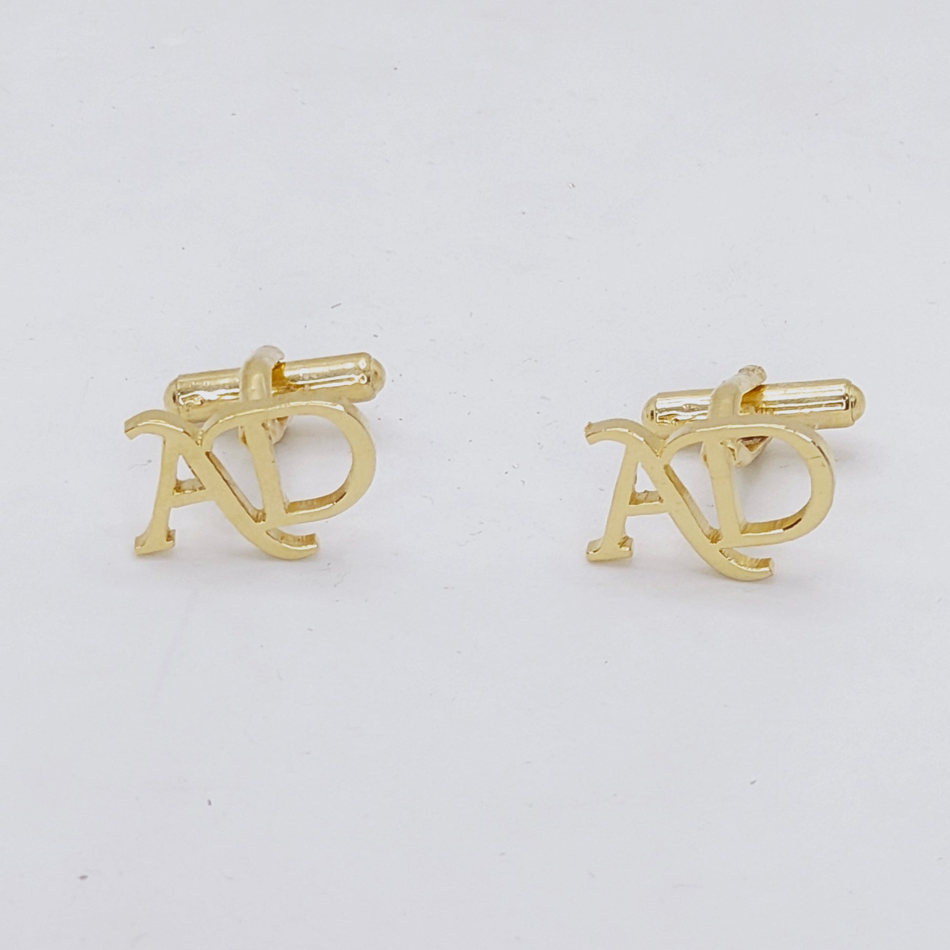 Expertly crafted from brass and adorned with a gold plating, AD Double Initial Cufflinks add a touch of luxury to any outfit. The brass construction ensures durability while the gold plating adds a sophisticated shine. Elevate your style with these timeless and stylish cufflinks.