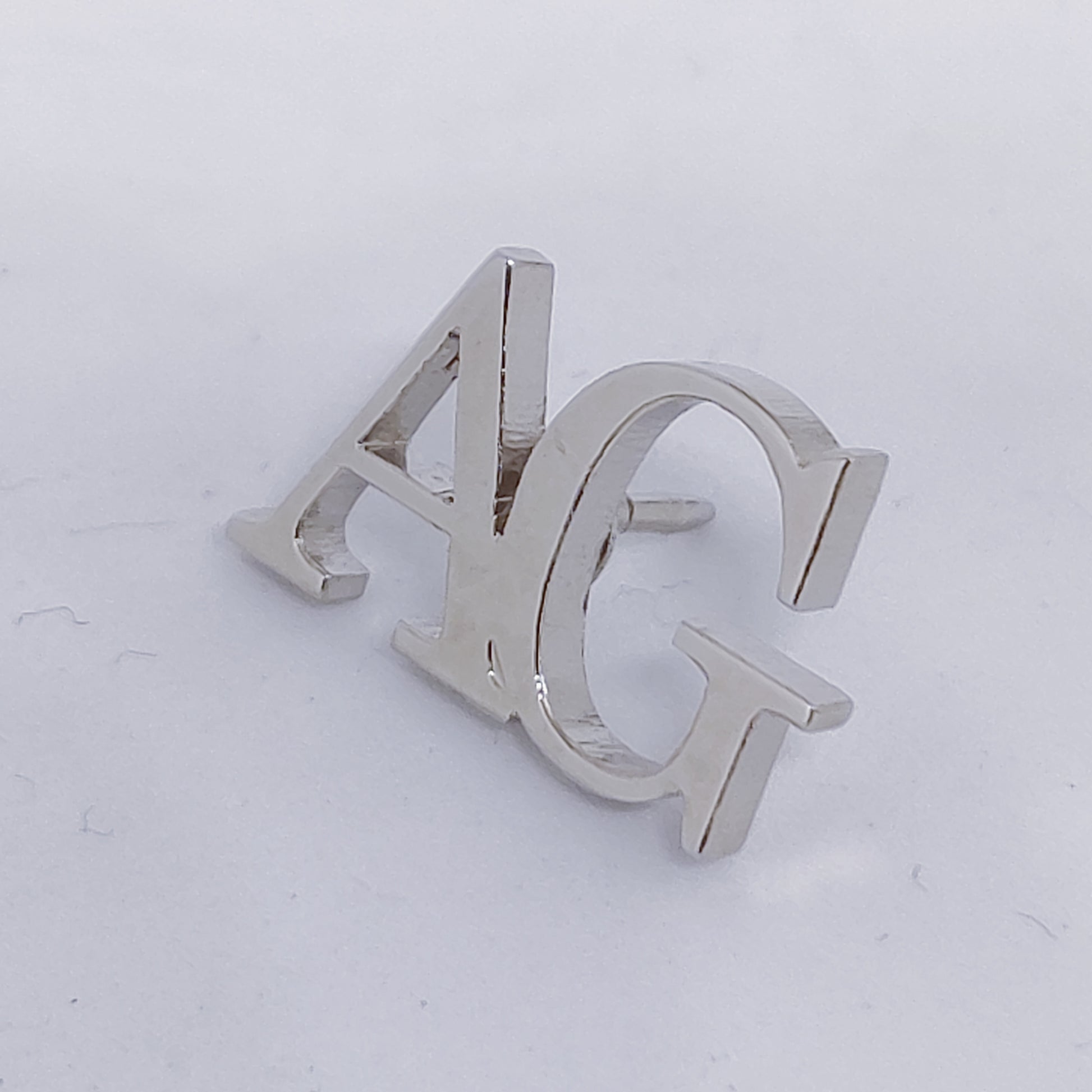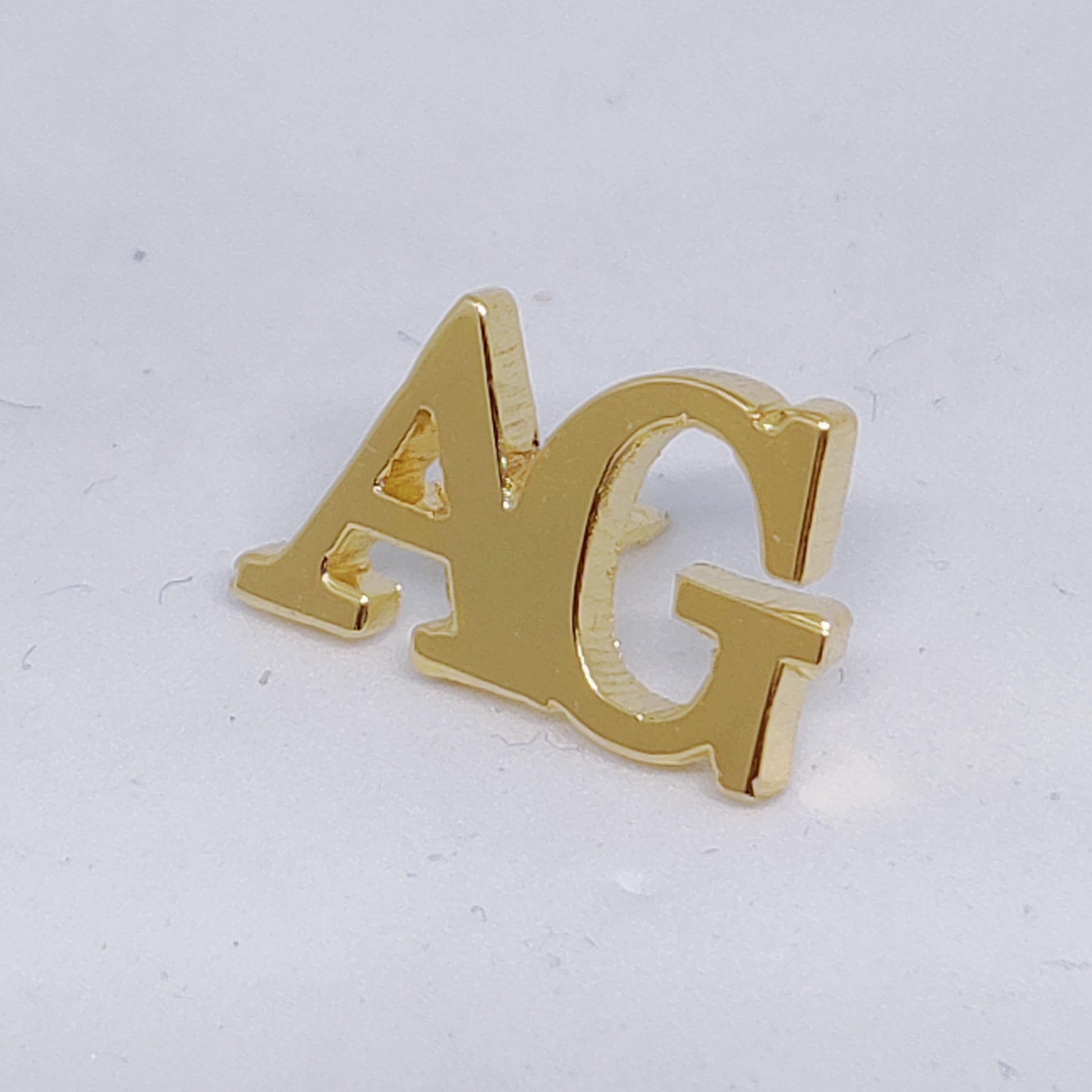 Crafted with high-quality brass and plated with luxurious gold or silver the AG Double Initial Brooch Lapel Pin adds a touch of elegance to any outfit. Its unique design features two initials, making it a perfect personalized accessory for any occasion. Elevate your style with this timeless and sophisticated piece.