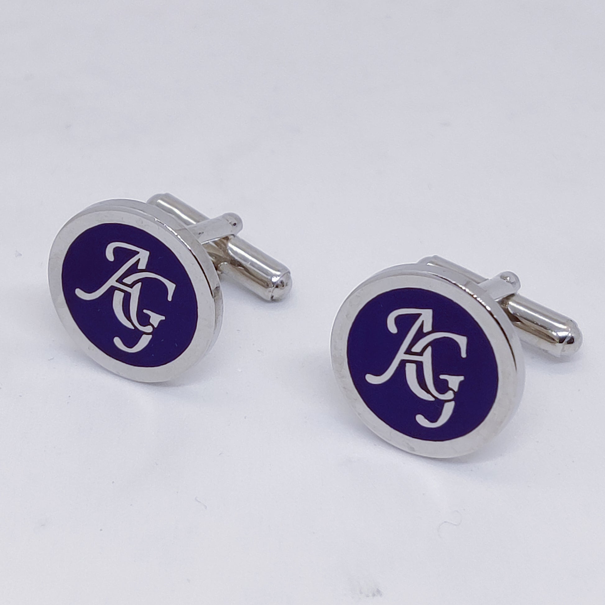 Crafted from high-quality brass and finished with a sleek silver plating, these AG Initial Monogram Cufflinks are a sophisticated choice for any occasion. The striking blue enamel adds a touch of color and character to your formal attire, making you stand out as a true style expert.