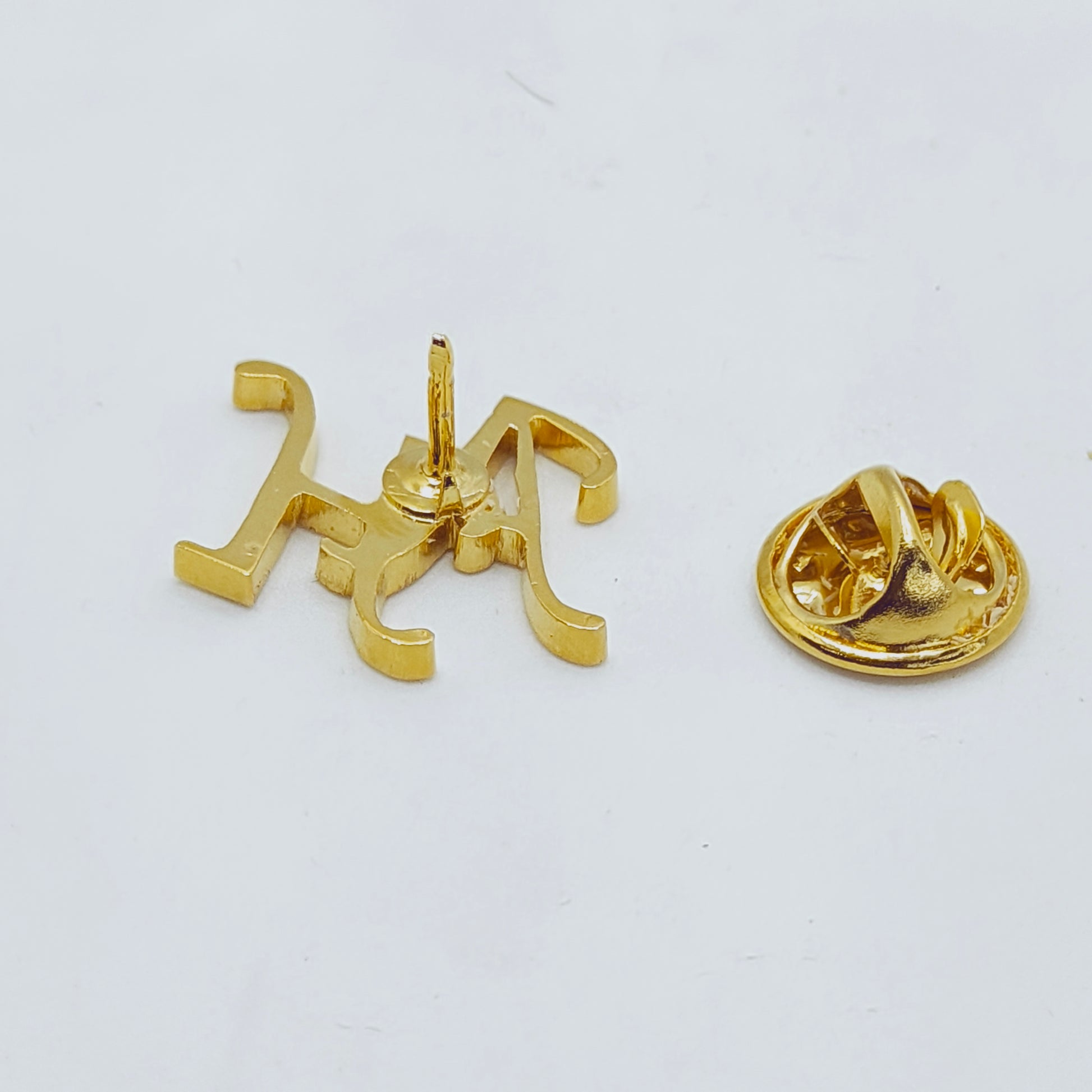 This AH Double Initial Lapel Pin is crafted from high-quality brass with a luxurious gold plating. Its high-quality materials ensure durability and an elegant appearance. Add a touch of sophistication to any outfit with this expertly made lapel pin.