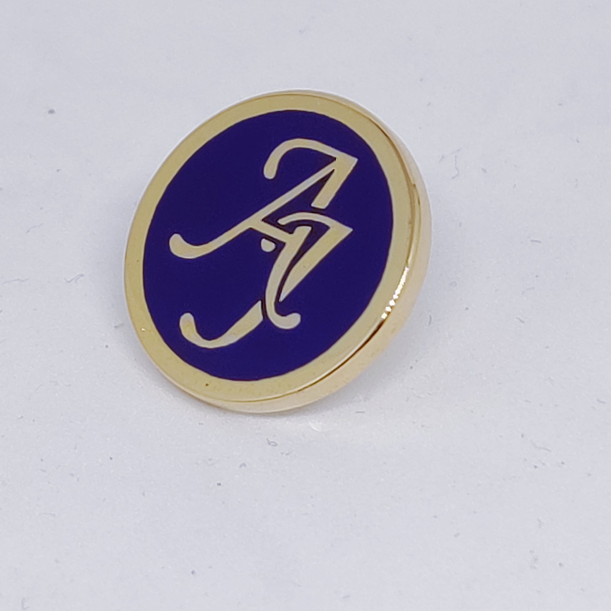 Wear your personality on your lapel with our AJ initial monogram lapel pin! Crafted from brass and gold plated, this pin features a striking blue enamel design. Show off your unique style and add a playful touch to any outfit. (Pin pun definitely intended.)