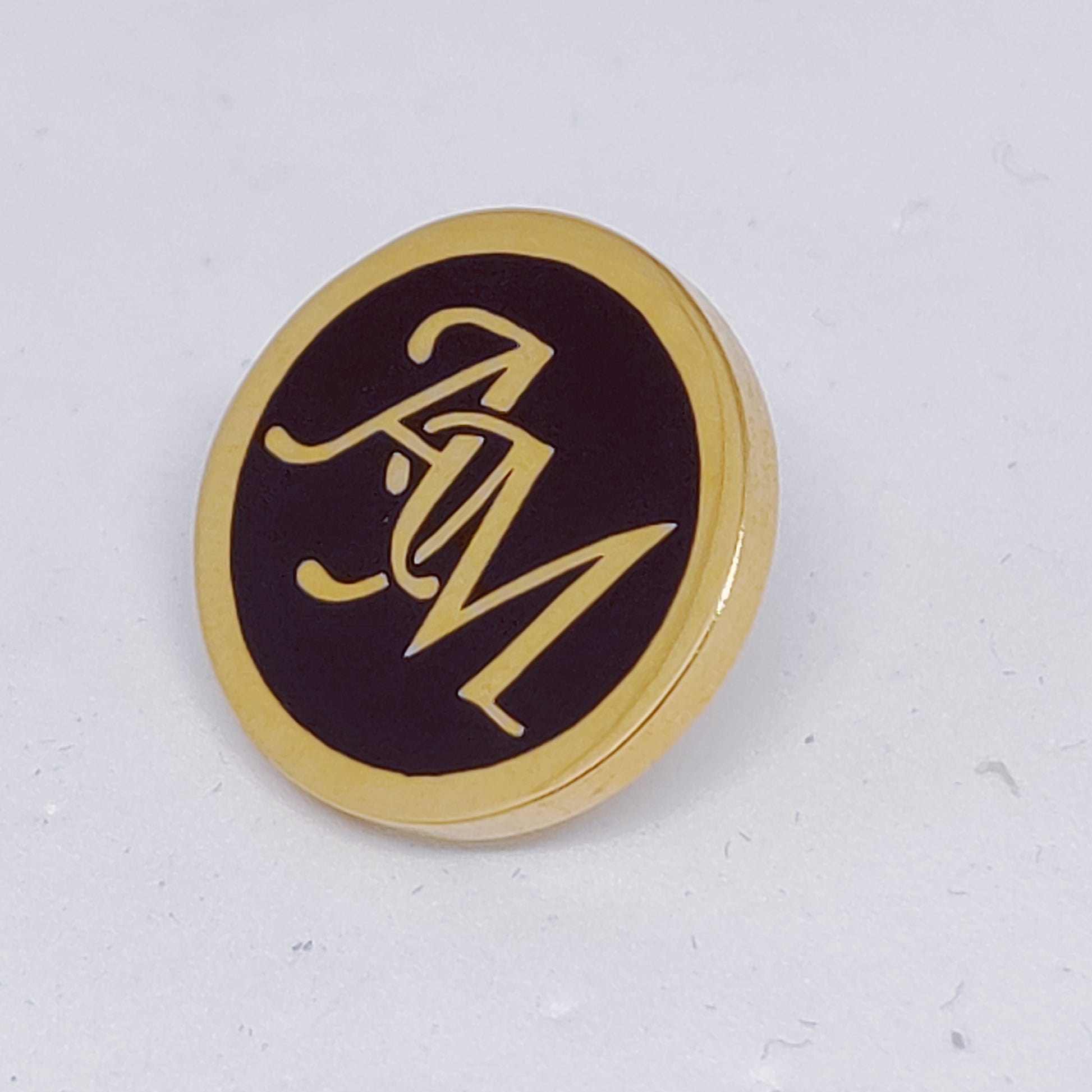 Exude sophistication and elegance with our AM initial monogram brooch. Made of brass and coated with gold electroplating, its black enamel adds a touch of luxury. A subtle yet stylish accessory, perfect for the fashion-forward. Make a statement that is uniquely yours.