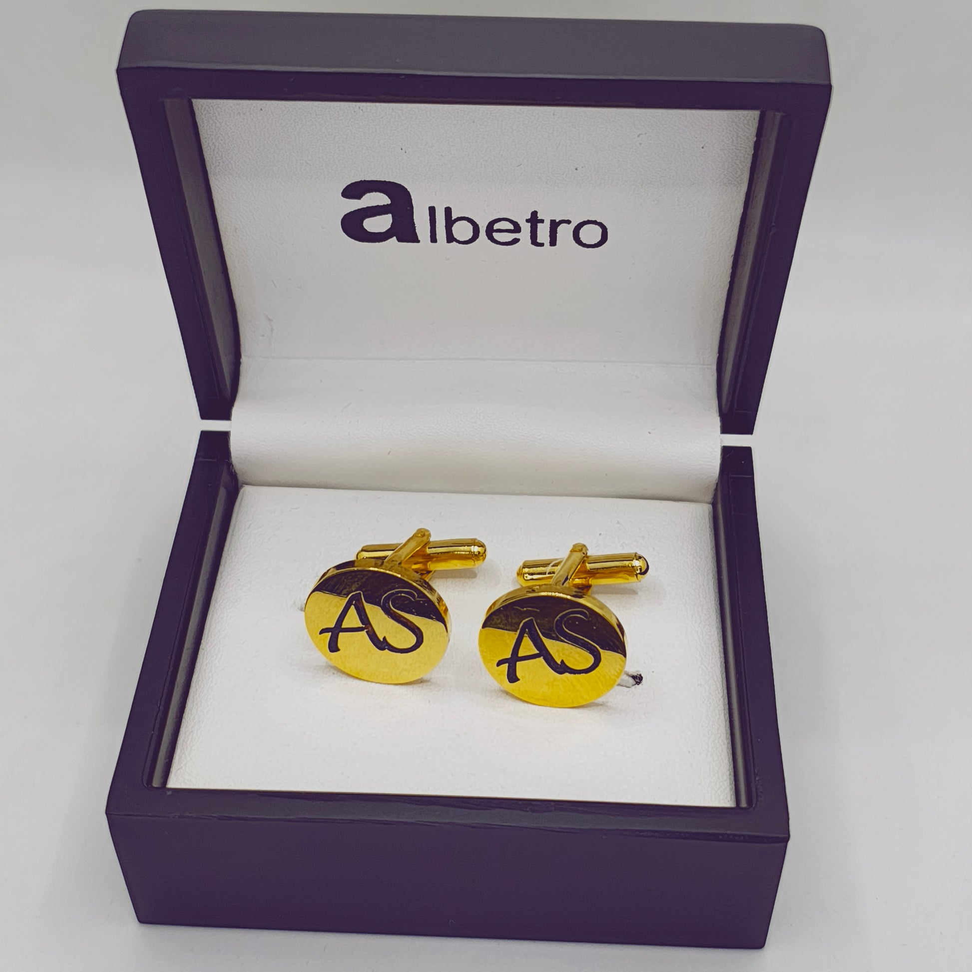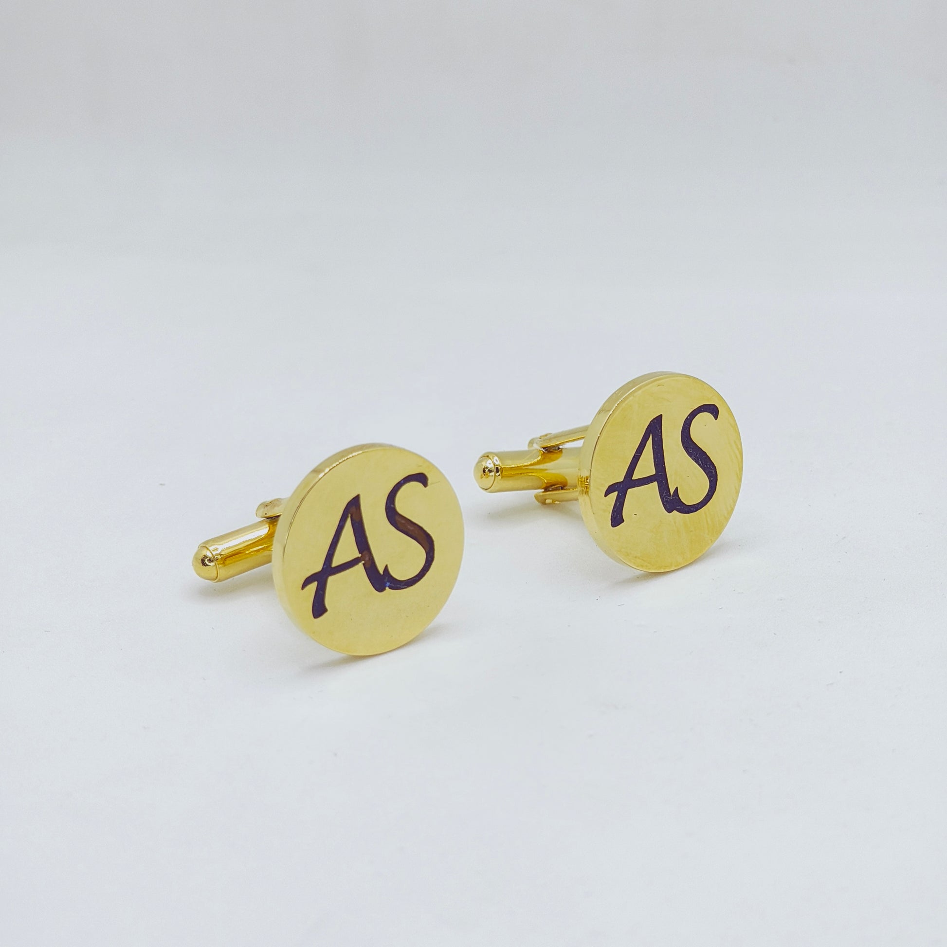 Crafted from brass and expertly gold plated, these AS engraved cufflinks are the perfect addition to any formal attire. Enhance your look with the luxurious touch of these high-quality cufflinks.