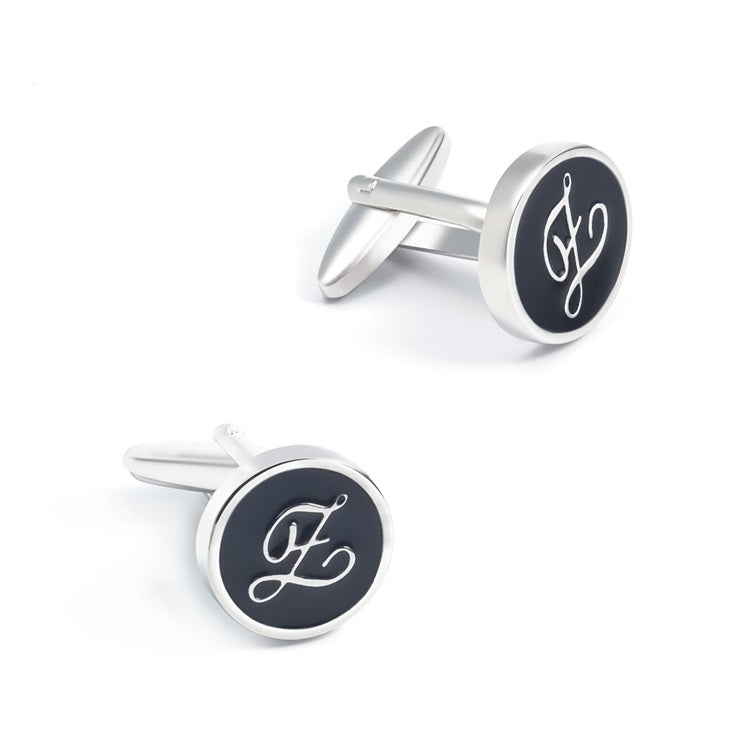 Black Enamel Letter Calligraphy Monogram Cufflinks