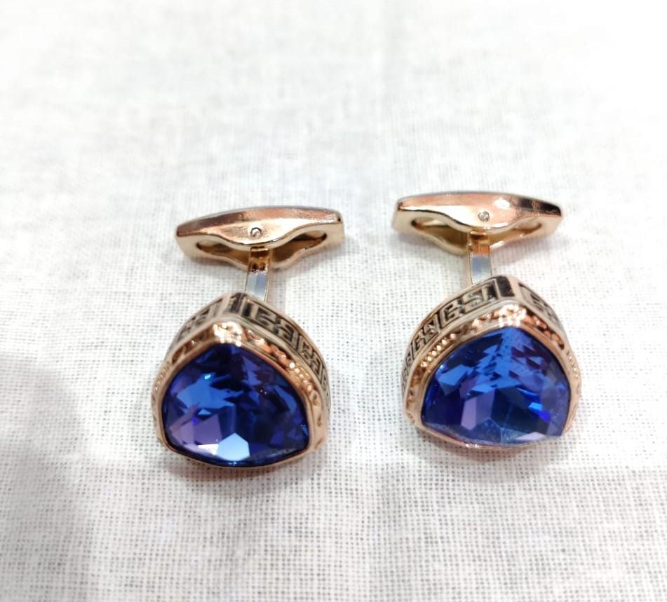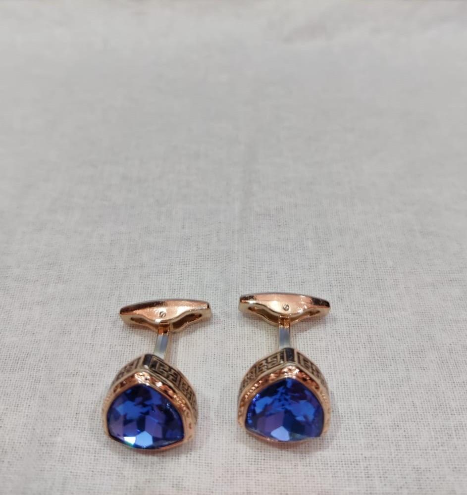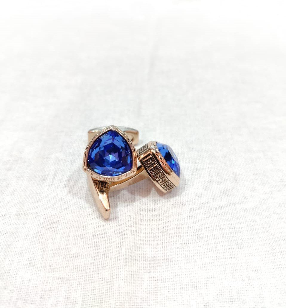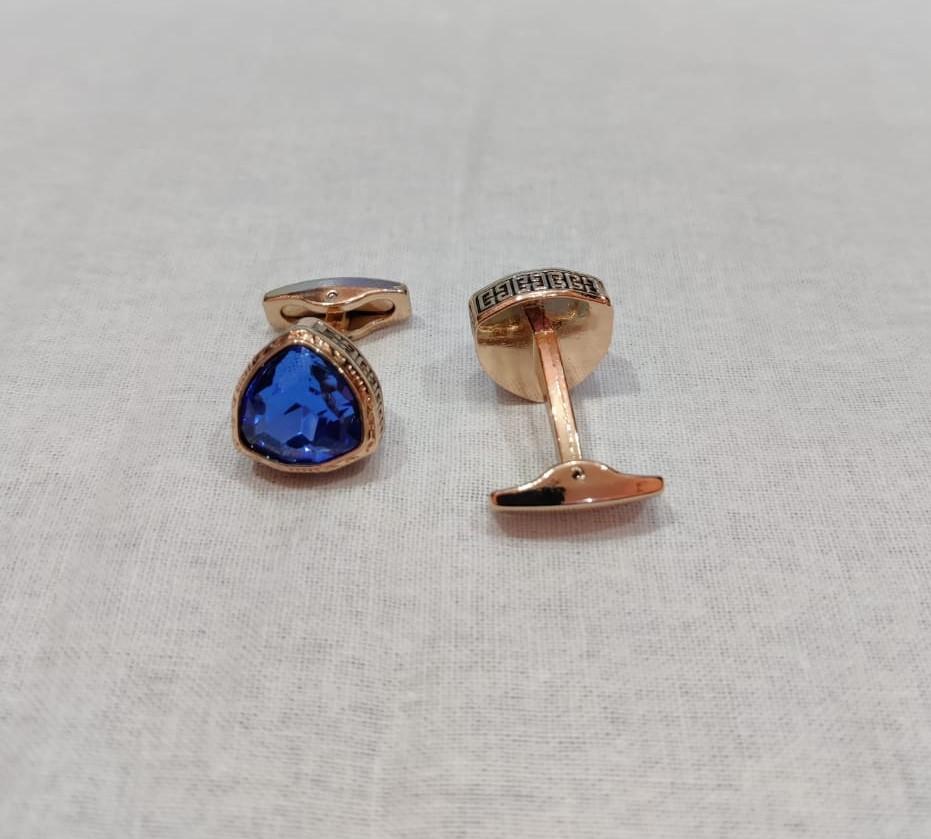 Blue Stone Triangular Shaped Rose Gold Cufflinks