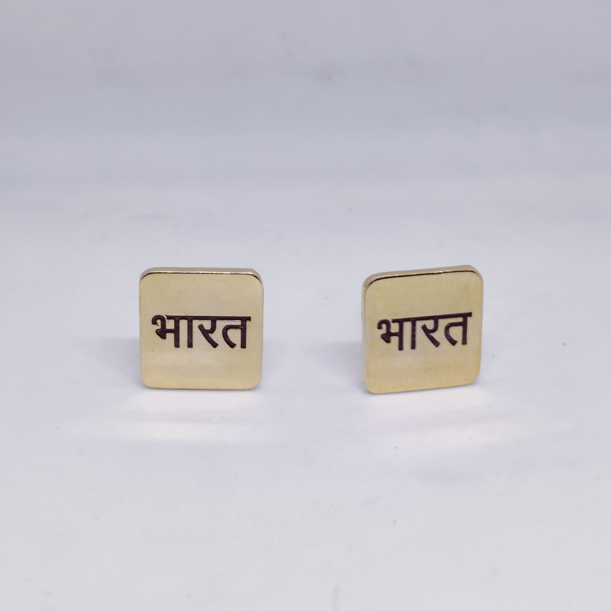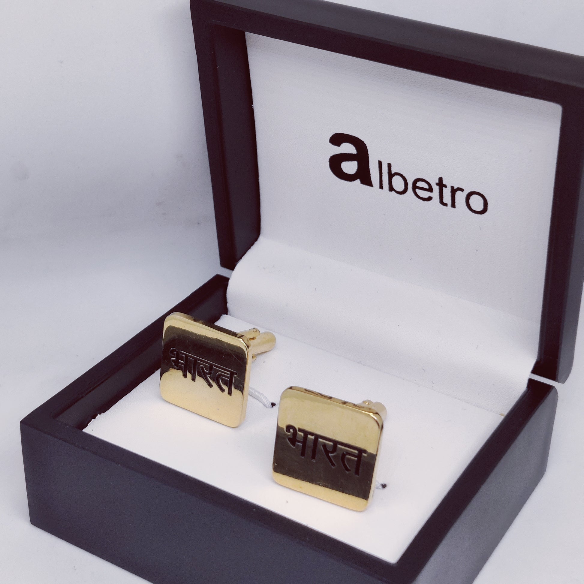 These high-quality brass gold-plated cufflinks feature an elegant भारत engraving, making them the perfect accessory for any ensemble. Offering a professional look, they are sure to make a subtle statement and elevate your style.
