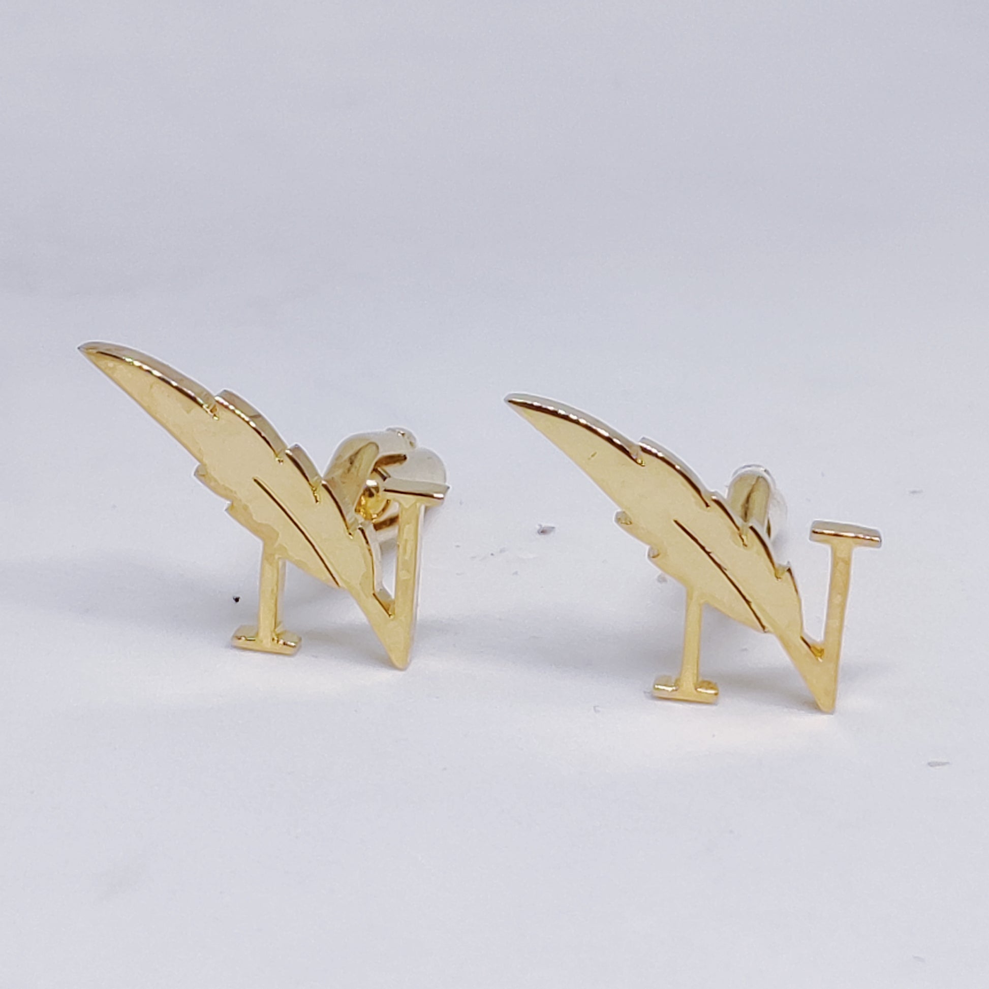 These Feather Cufflinks, featuring a stylish N initial, are crafted with brass and electroplated in gold for added durability. Elevate your formal attire with a touch of elegance and personalization. Perfect for any occasion, these cufflinks are a must-have for any stylish man.