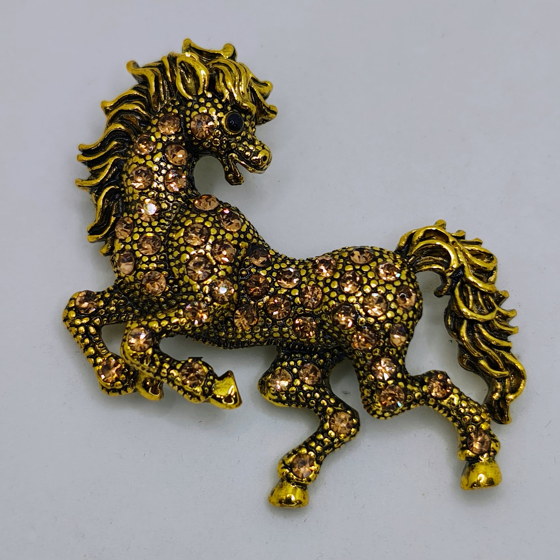 This brooch is perfect for the horse lover in your life. With sparkling diamante detailing, it's an elegant addition to any outfit. Show off your love for horses with this unique piece. A galloping good time!