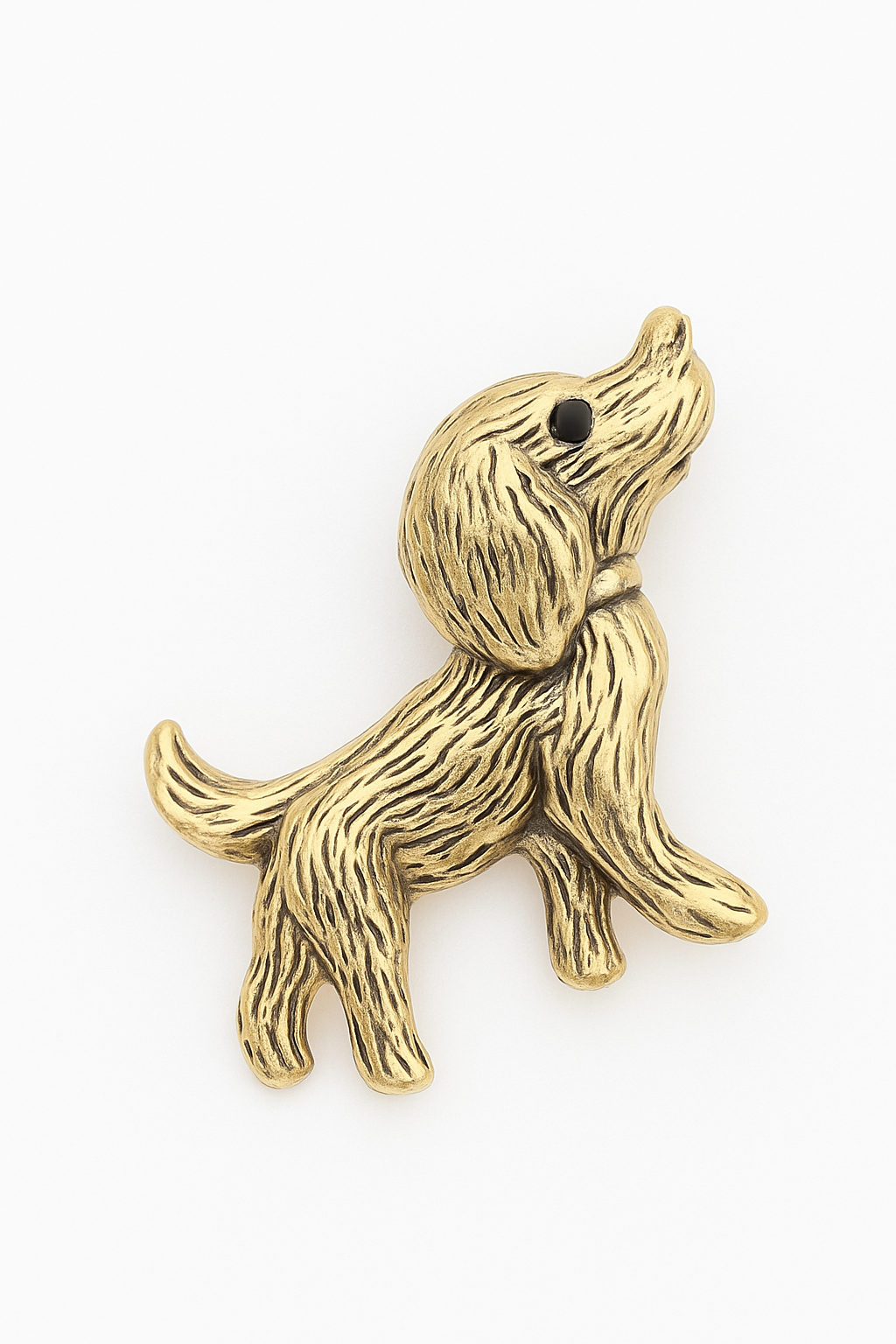 Add a touch of charm to your outfit with this elegant Golden Pup Brooch. Crafted in a lustrous gold-tone finish, this adorable dog-shaped accessory captures intricate fur detailing and a playful pose — perfect for animal lovers and style enthusiasts alike. Pin it to your jacket, scarf, or handbag to bring a hint of personality and warmth to any look.