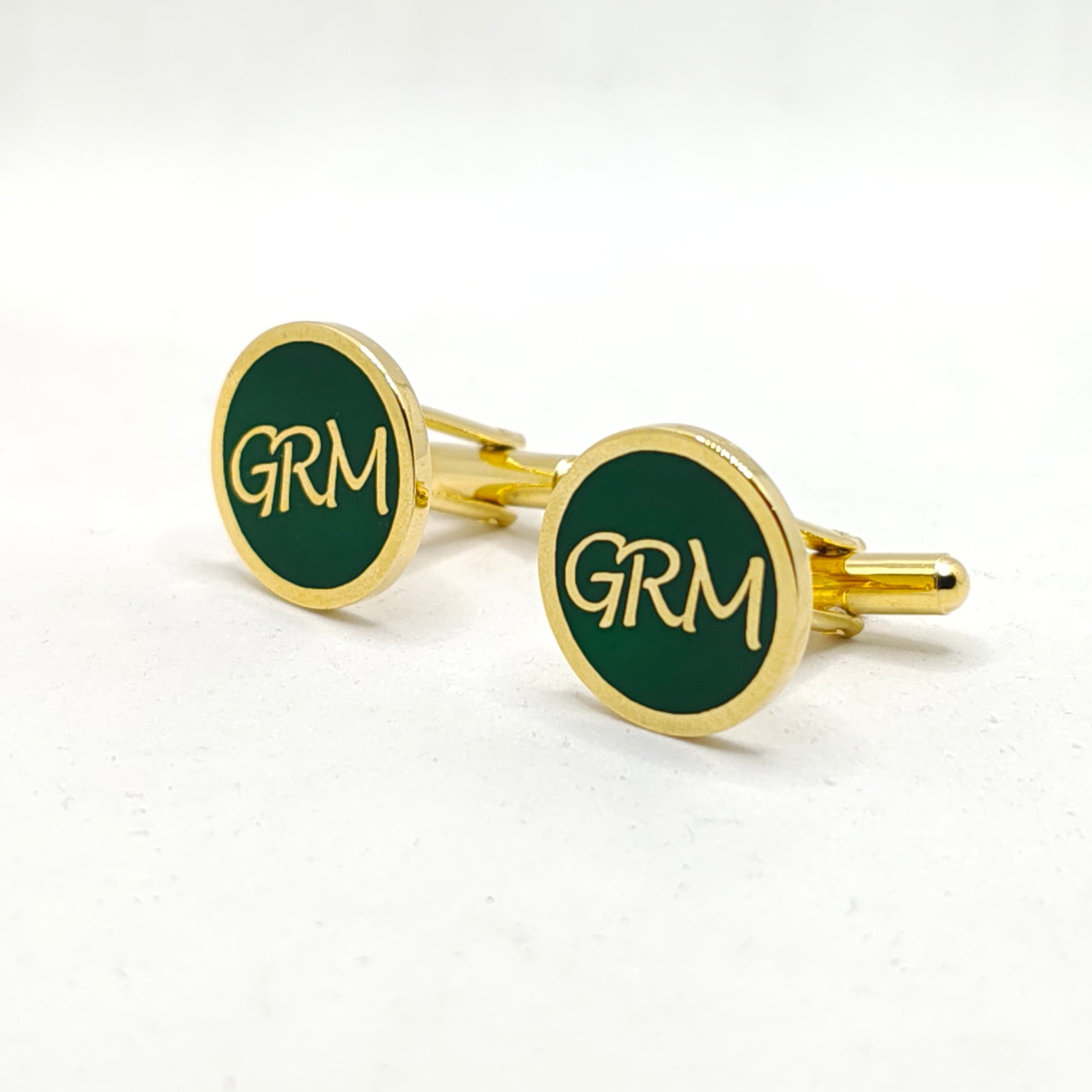 Crafted from durable brass with a rich green enamel finish and elegant gold plating, these GRM Initial Monogram Cufflinks add a refined touch to any outfit. Their classic design ensures they complement both formal and casual wear, making them a versatile accessory that supports your style with subtle sophistication.