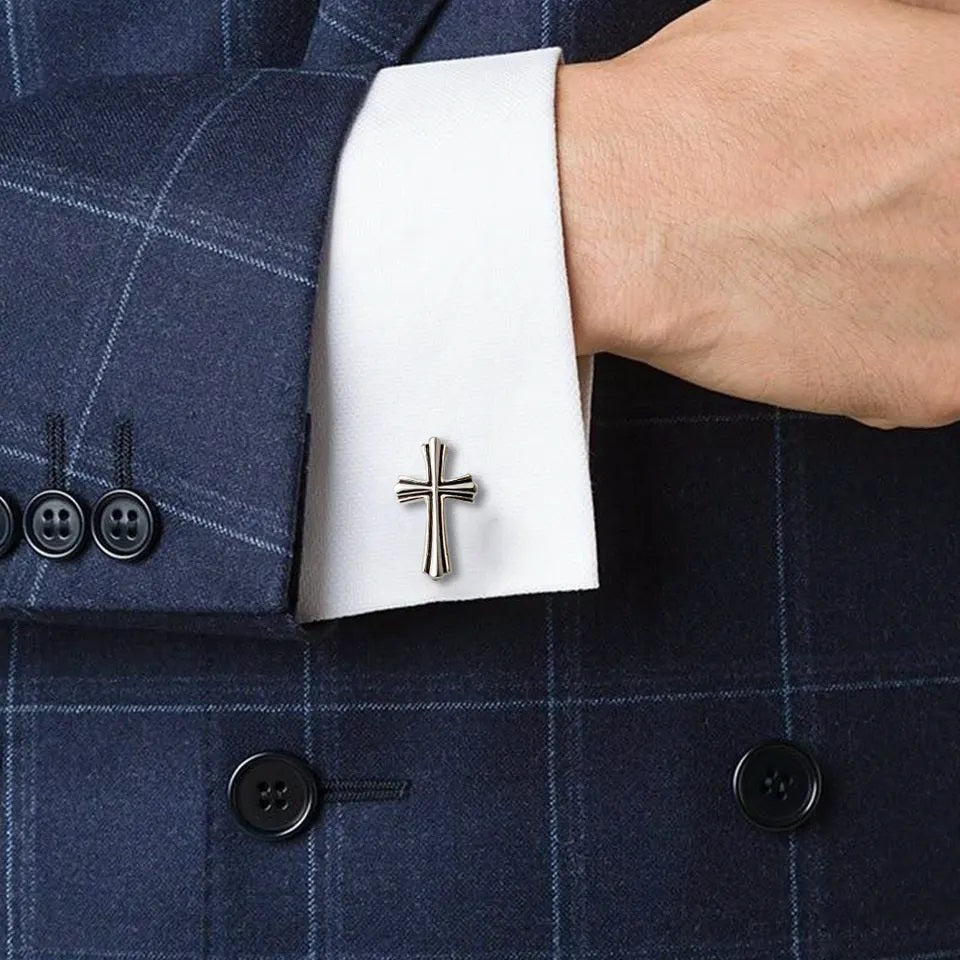 These brass silver-plated Christian Cross cufflinks are perfect for formal occasions. With their simple yet stylish design, they add a subtle hint of faith to any outfit. Show your faith in style!