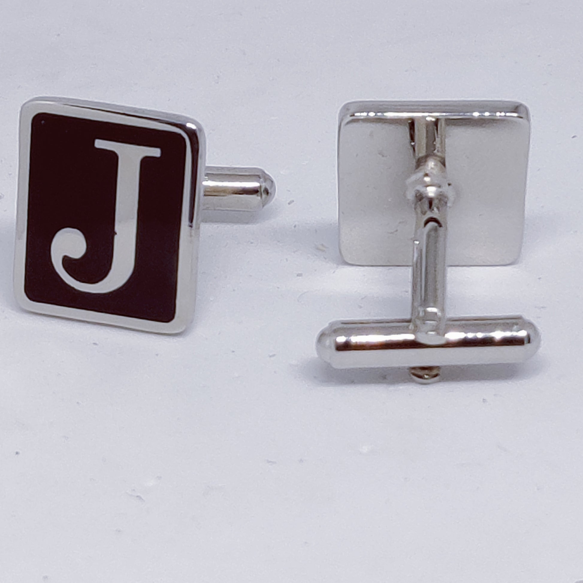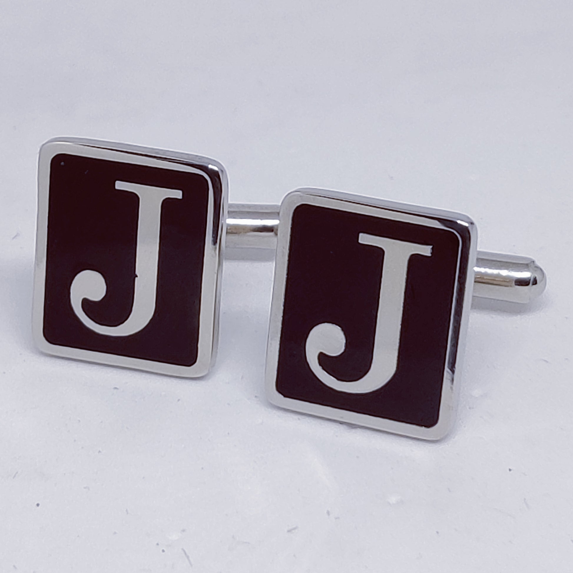 Crafted with expert precision, our Initial J Enamel Cufflinks are made of brass and silver electroplating, coated with sleek and durable black enamel. Elevate your style with this sophisticated accessory that combines quality materials and timeless design. Perfect for any formal or professional occasion.
