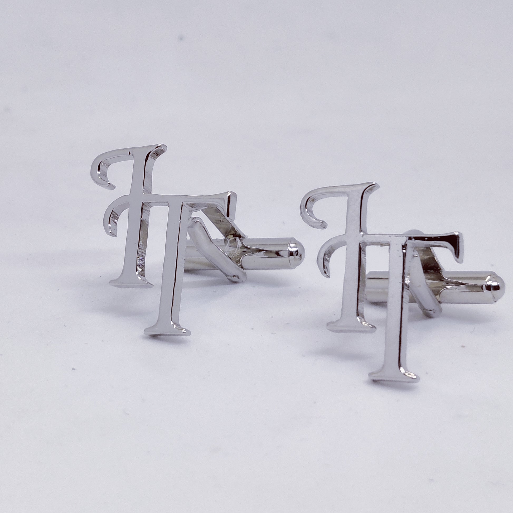 "Crafted with brass and silver electroplating, these IT Double Initial Cufflinks are a sleek and sophisticated addition to any formal attire. With a classic design and high-quality materials, these cufflinks make a statement of professionalism and style. Elevate your look with these expertly crafted pieces."