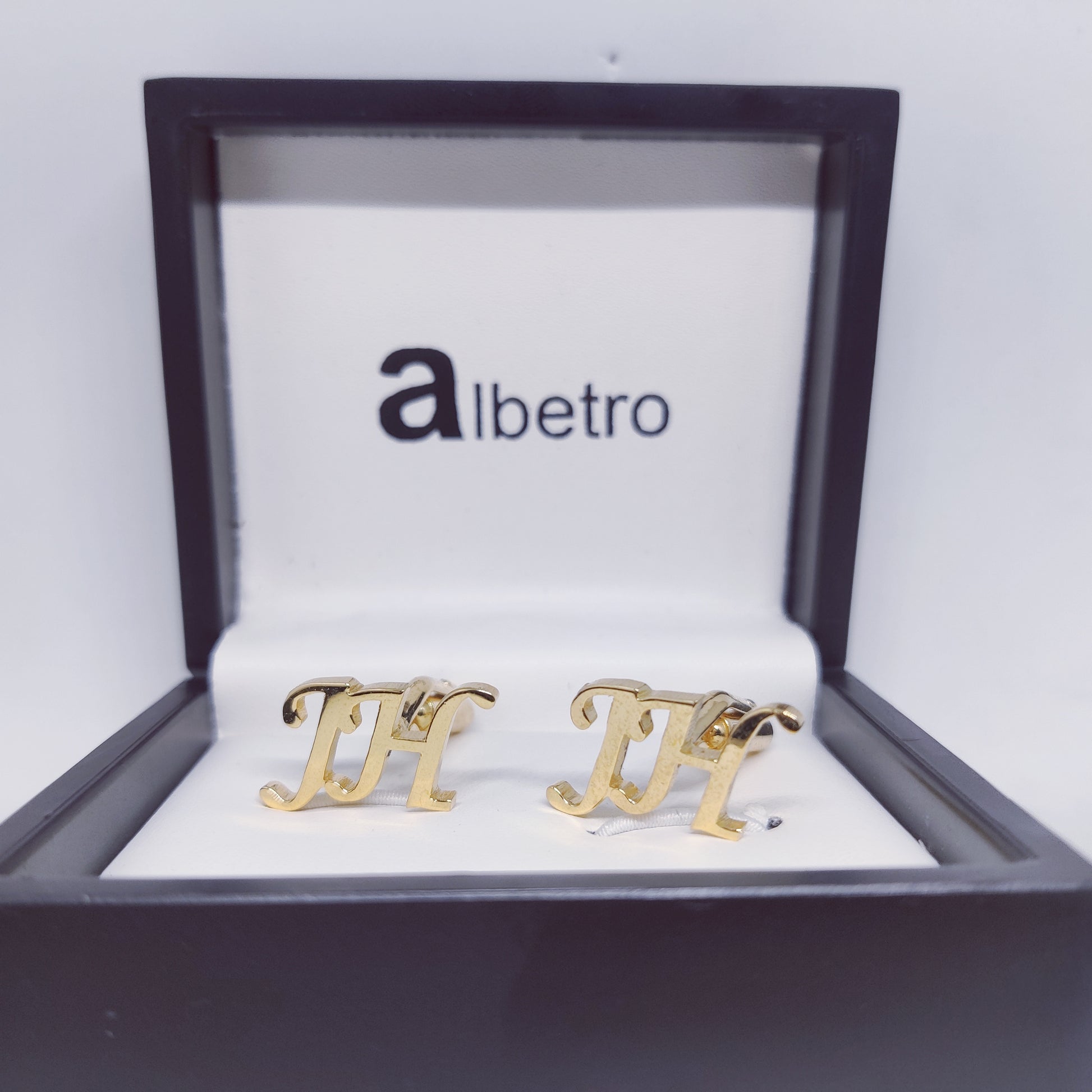 This luxurious set of JH Double Initial Cufflinks is made of brass with 18 karat gold electroplating for a unique and exquisite shine. An ideal accessory for any formal occasion, these cufflinks feature your choice of initials that will stay as bright and vibrant as the day you bought them.