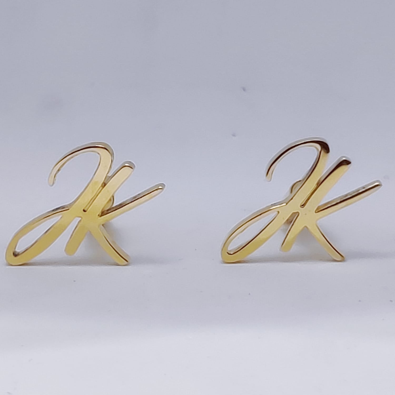 Expertly crafted with brass and coated in lustrous gold, these JK Double Initial Cufflinks add a touch of elegance to any attire. Elevate your style and make a statement at any event. Made with quality materials, these cufflinks are sure to impress with their impeccable design and lasting shine.