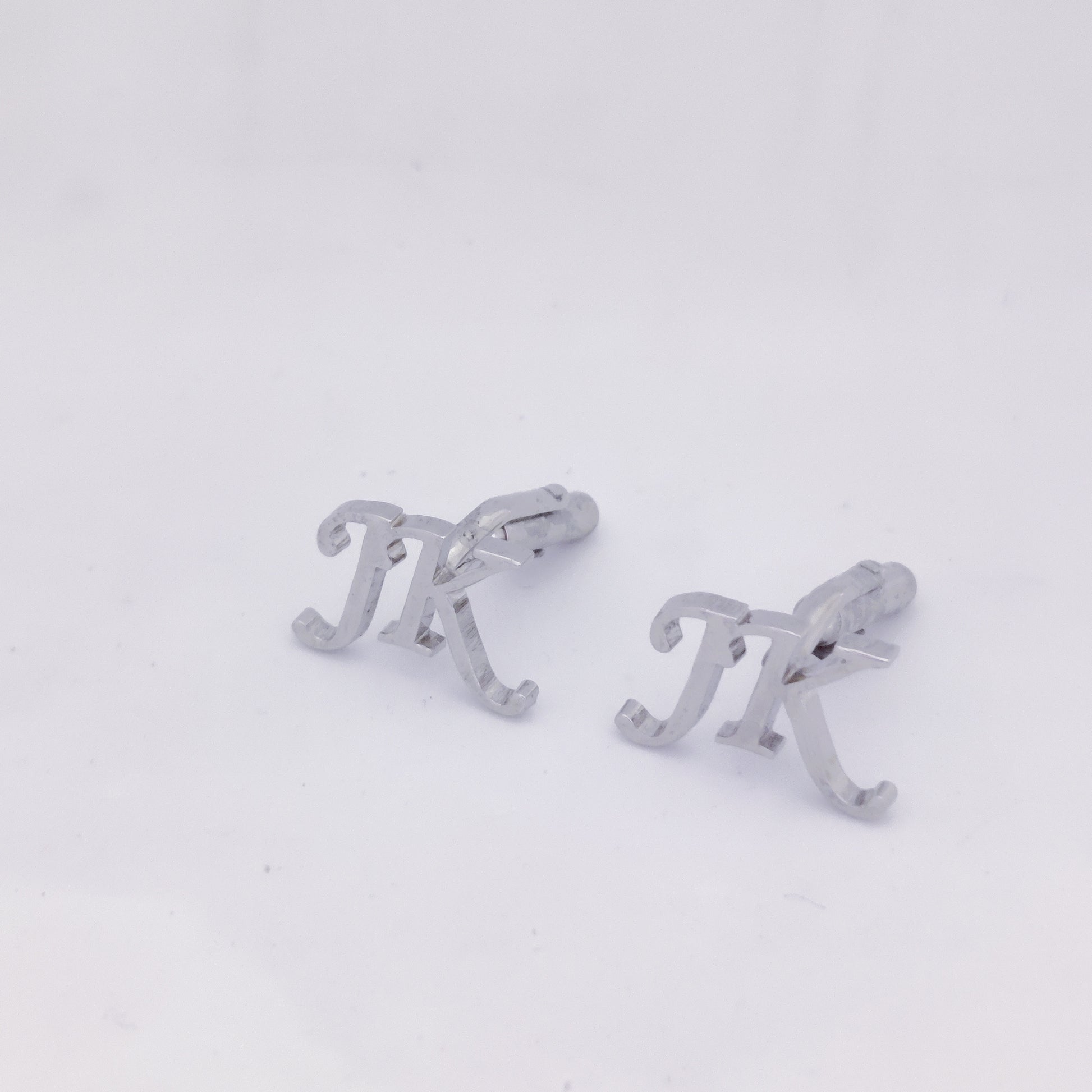 These JK Double Initial Cufflinks are expertly crafted from brass and adorned with a sleek silver plating. The perfect accessory for any formal occasion, these cufflinks add a touch of sophistication to any ensemble. Made with high-quality materials, they are both durable and stylish, making them a practical and fashionable choice.