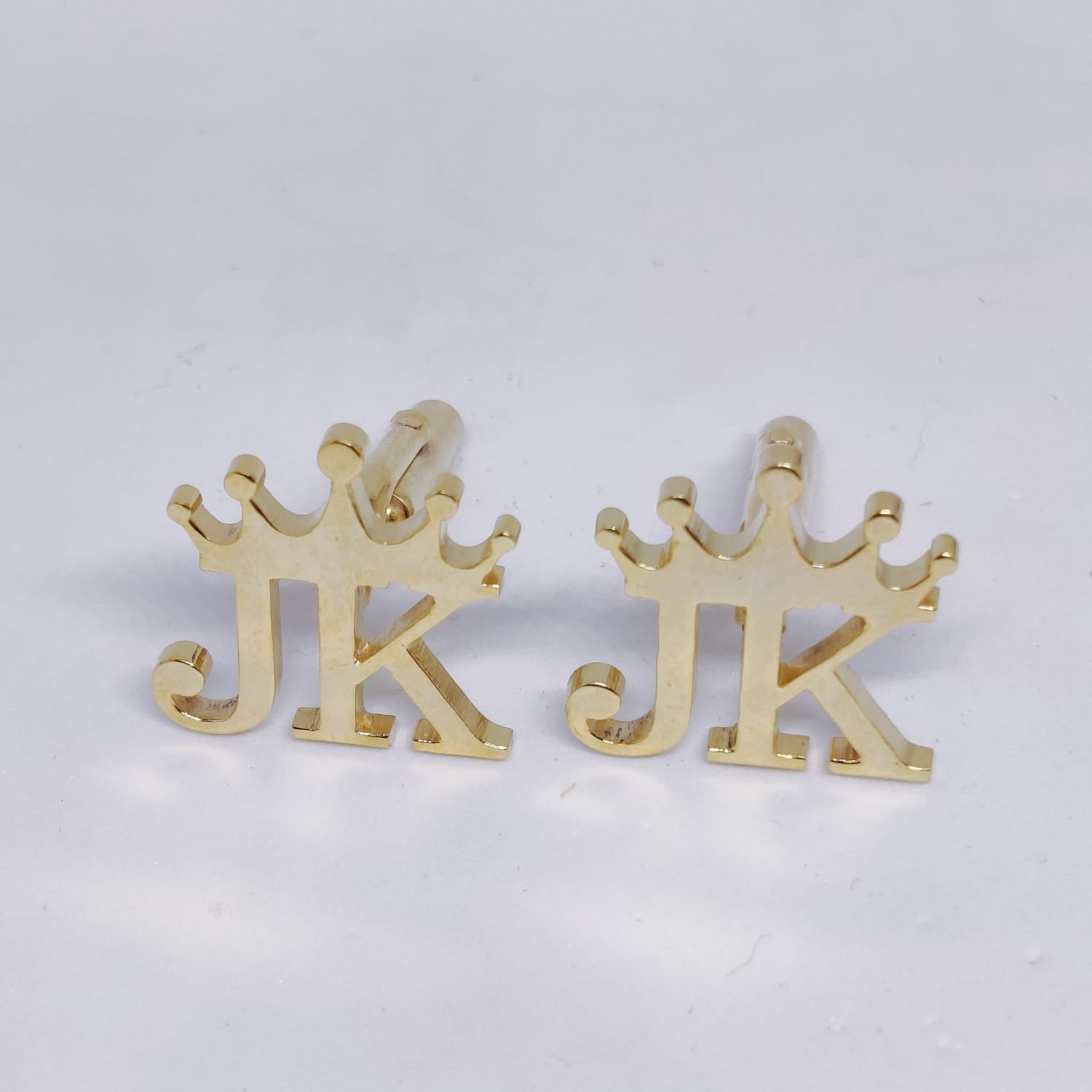 These JK Double Initial Cufflinks with Crown are expertly crafted from brass and plated in luxurious gold. Elevate any formal look with these one-of-a-kind accessories. Made with the finest materials and attention to detail, they add a touch of refinement and sophistication to any ensemble.