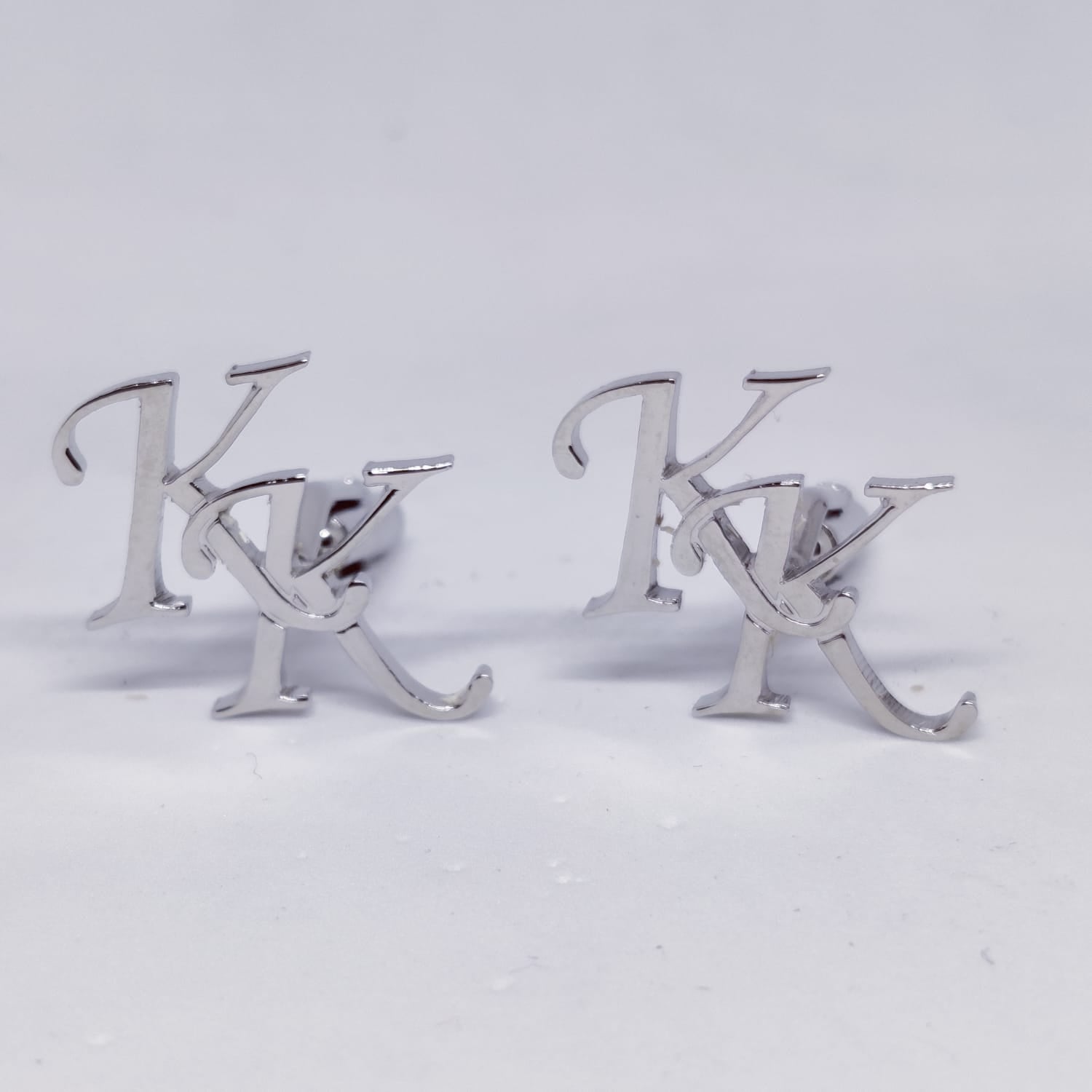 These KK Double Initial Cufflinks are expertly crafted with brass and silver plating, making them a durable and stylish accessory. Enhance your wardrobe with these cufflinks, perfect for any occasion.