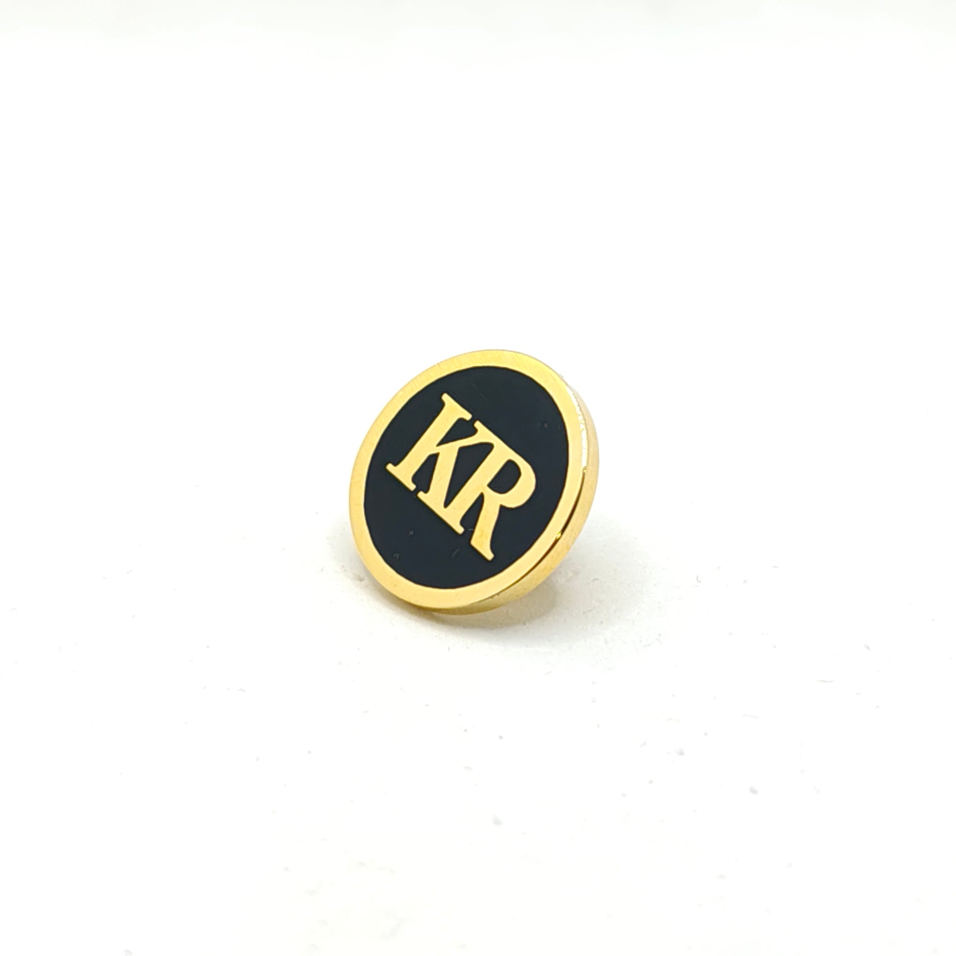 This KR Initial Monogram Lapel Pin combines elegance and durability with its brass base, black enamel detailing, and gold plating. Perfect for adding a personalized touch to your outfit, it offers a subtle yet stylish way to express your identity. Its quality materials ensure long-lasting shine and resistance to wear, making it a thoughtful accessory for everyday wear or special occasions.