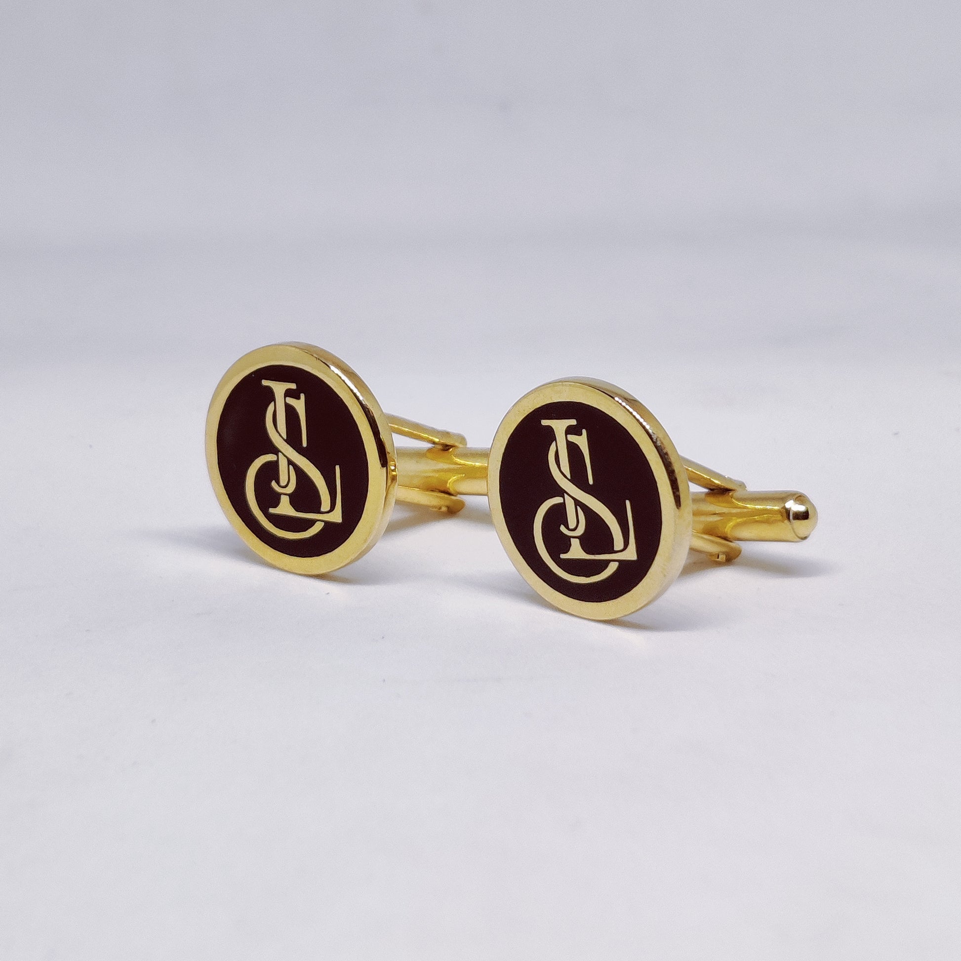 These LS initial monogram cufflinks are the perfect way to add a subtle touch of sophistication to any look. Crafted from brass with black enamel gold plating, these timeless cufflinks offer a stylish solution for any occasion.