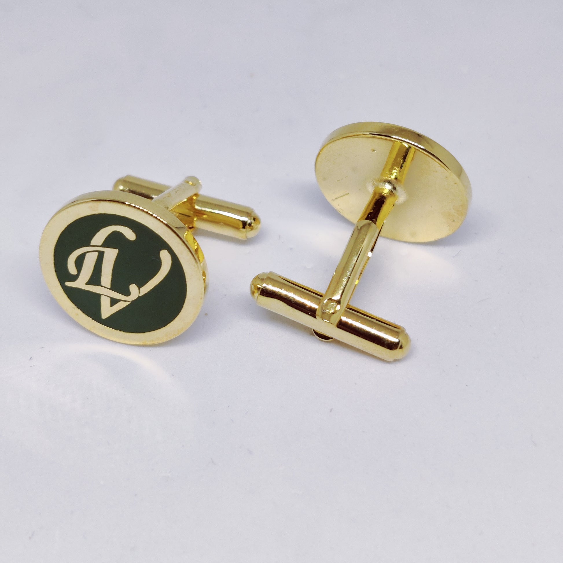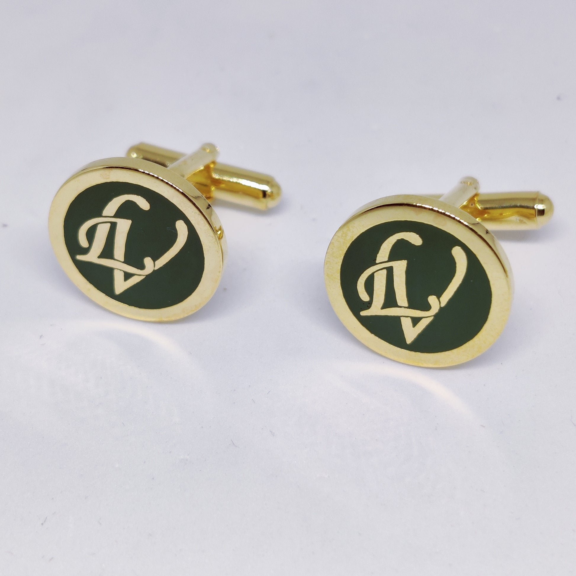 Elevate your style with our LV Initial Monogram Cufflinks. Crafted from brass and gold plated, these cufflinks exude sophistication. The striking green enamel adds a touch of elegance to any outfit. Enhance your accessory collection and make a statement at any formal event.