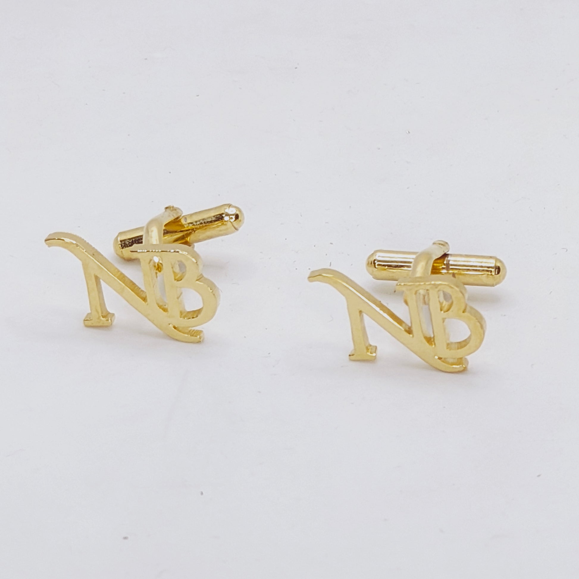 Expertly crafted with brass and finished with a luxurious gold plating, these NB Double Initial Cufflinks add an elegant touch to any formal outfit. The high-quality materials ensure long-lasting durability, making them a sophisticated and timeless accessory for any occasion. Personalize your style with your own initials.