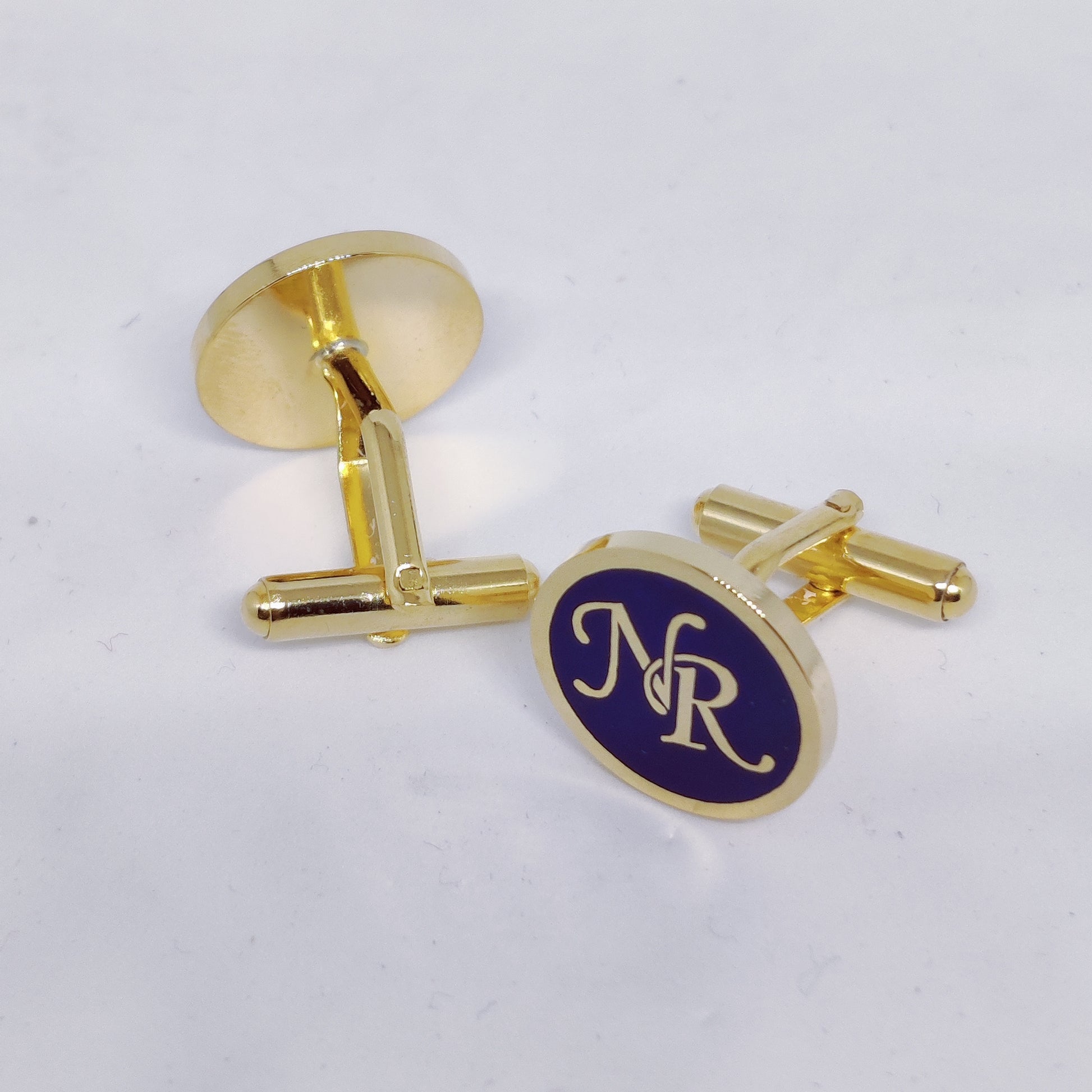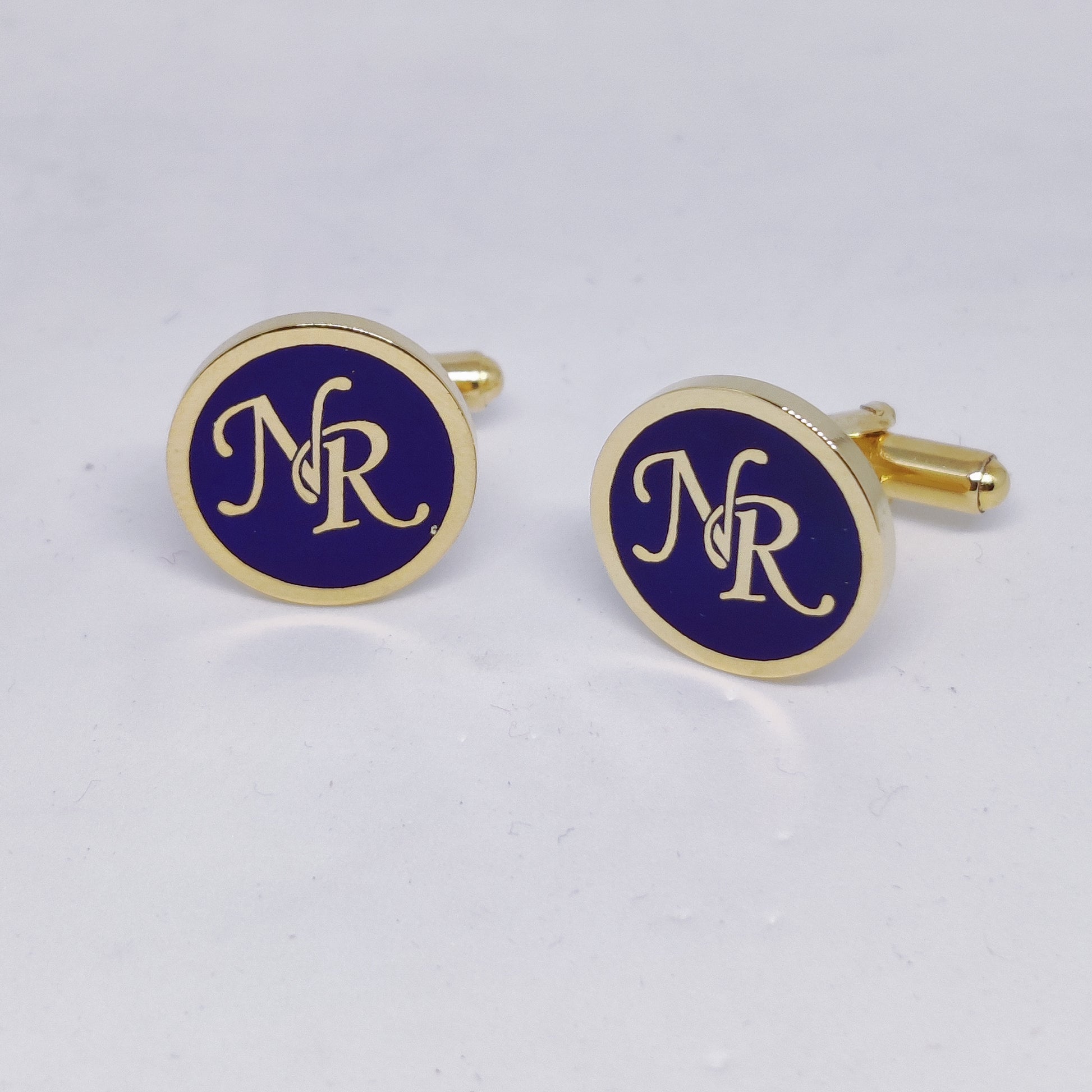 Crafted from high-quality brass and coated in a luxurious gold plating, these NR initial monogram cufflinks exude elegance and sophistication. The enamel finish adds a touch of color and personality. Elevate your style and make a statement with these impeccable cufflinks.