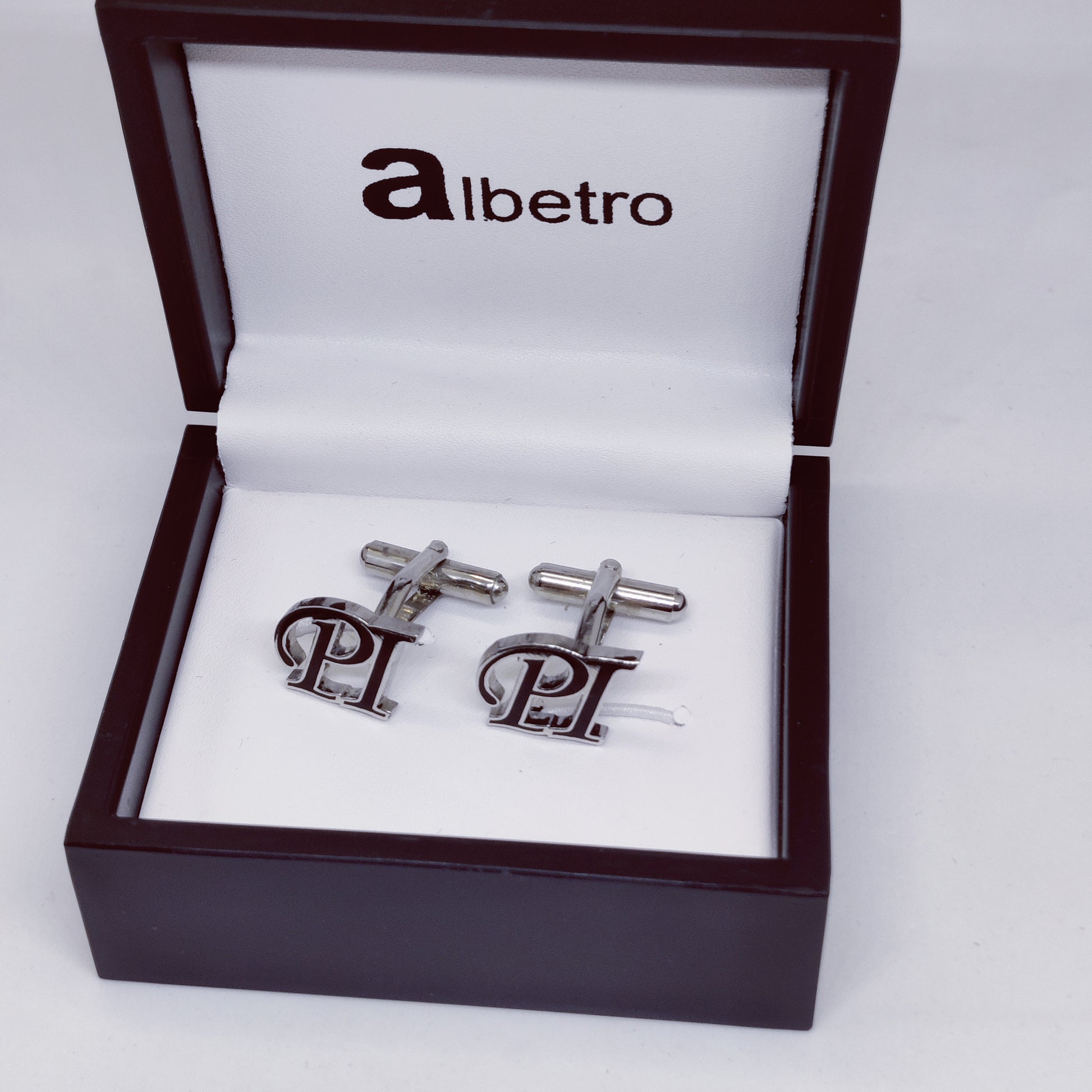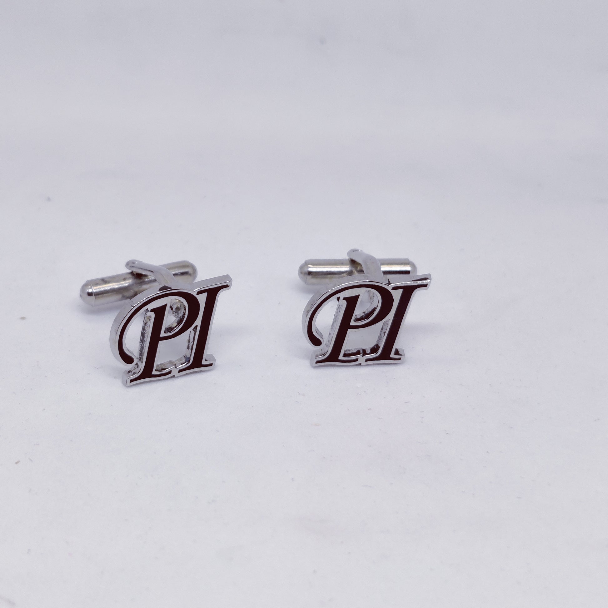 These PI Double Initial Cufflinks feature enamel on top of silver plating, crafted from high-quality brass. Elevate your formal attire with a touch of sophistication and personalization. Practical and elegant, these cufflinks are perfect for any occasion.