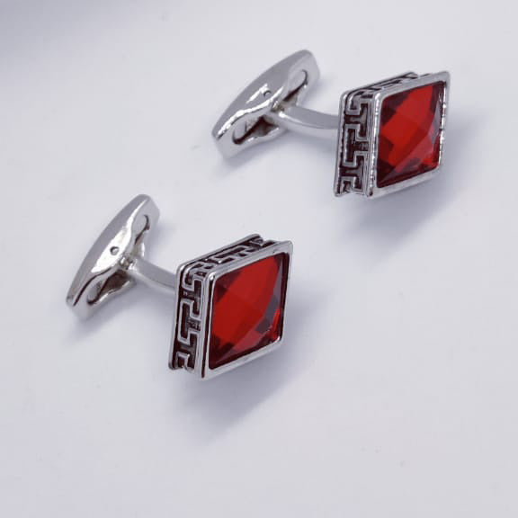 These Red Stone Rhombus Cufflinks add a touch of sophistication to any outfit. The rhombus shape complements a variety of looks and features a red stone for a luxurious pop of color.