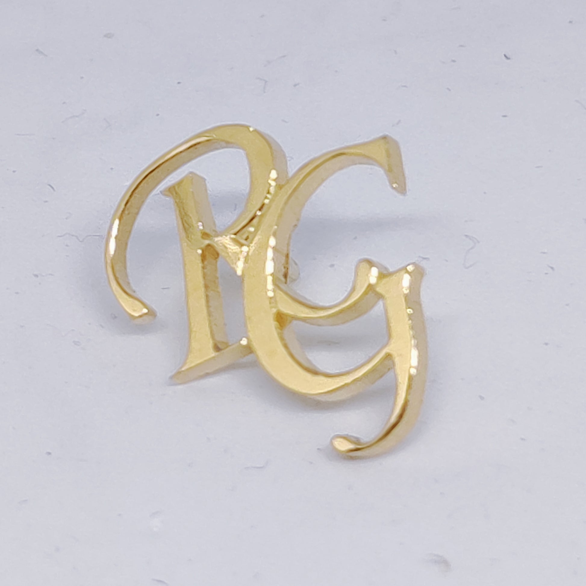 Crafted from high-quality brass and finished with a luxurious gold electroplating, the RG double initial lapel pin adds a touch of sophistication to any outfit. Perfect for personalizing your style, this lapel pin is an elegant addition to any accessory collection.