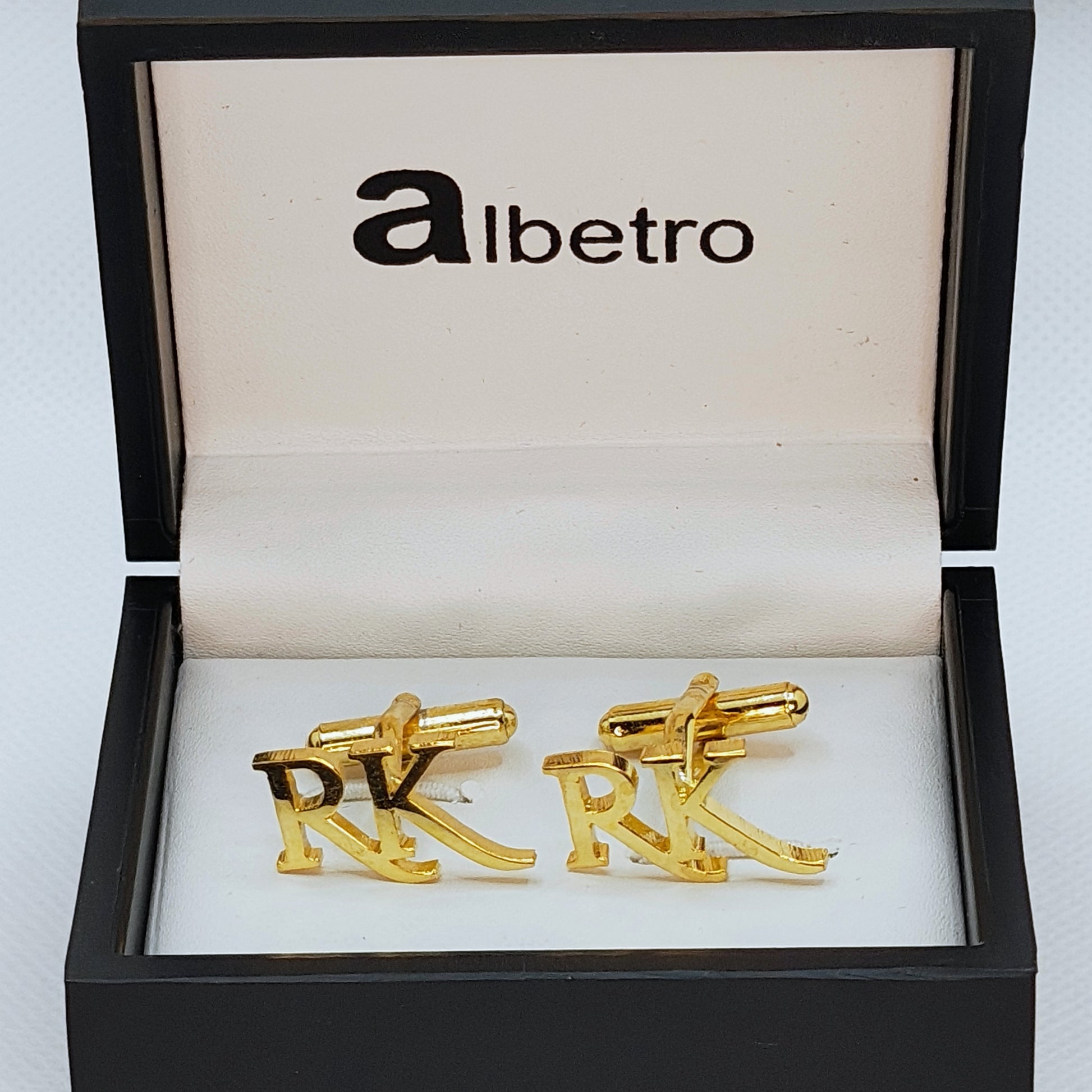 Crafted with brass and coated in 20k gold, the RK Double Initial Cufflinks are a sophisticated accessory. Each pair features two initials, providing a personal touch to any formal outfit. Elevate your style and show off your initials with these luxurious cufflinks.