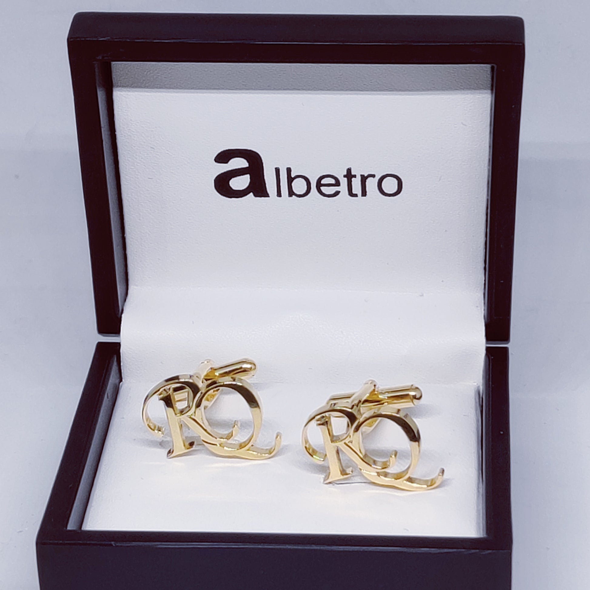 Elevate your style with our RQ Double Initial Cufflinks. Made of brass with a sleek gold plated finish, these cufflinks add a touch of sophistication to any outfit. Perfect for the fashion-forward professional, these cufflinks are a must-have accessory for any occasion.