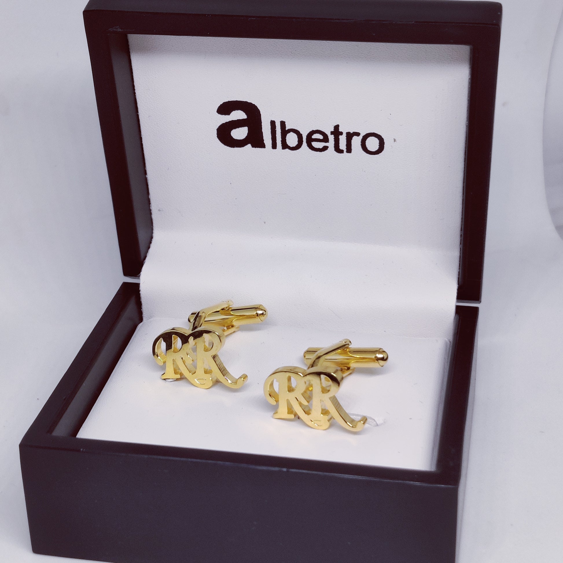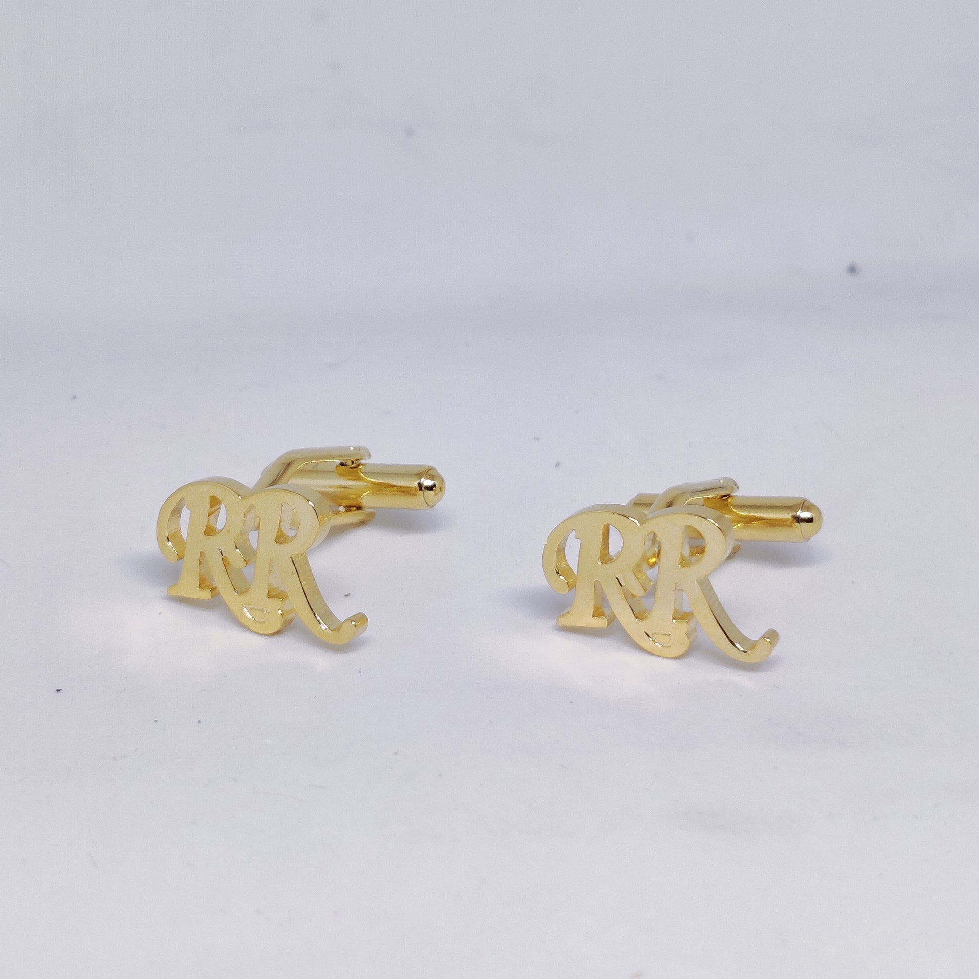 These RR Double Initial Cufflinks are crafted with brass and luxuriously gold plated, to offer an unforgettable look. The perfect addition to any outfit, they'll add a touch of timeless elegance and flair. Impress everyone with these sophisticated accessories!