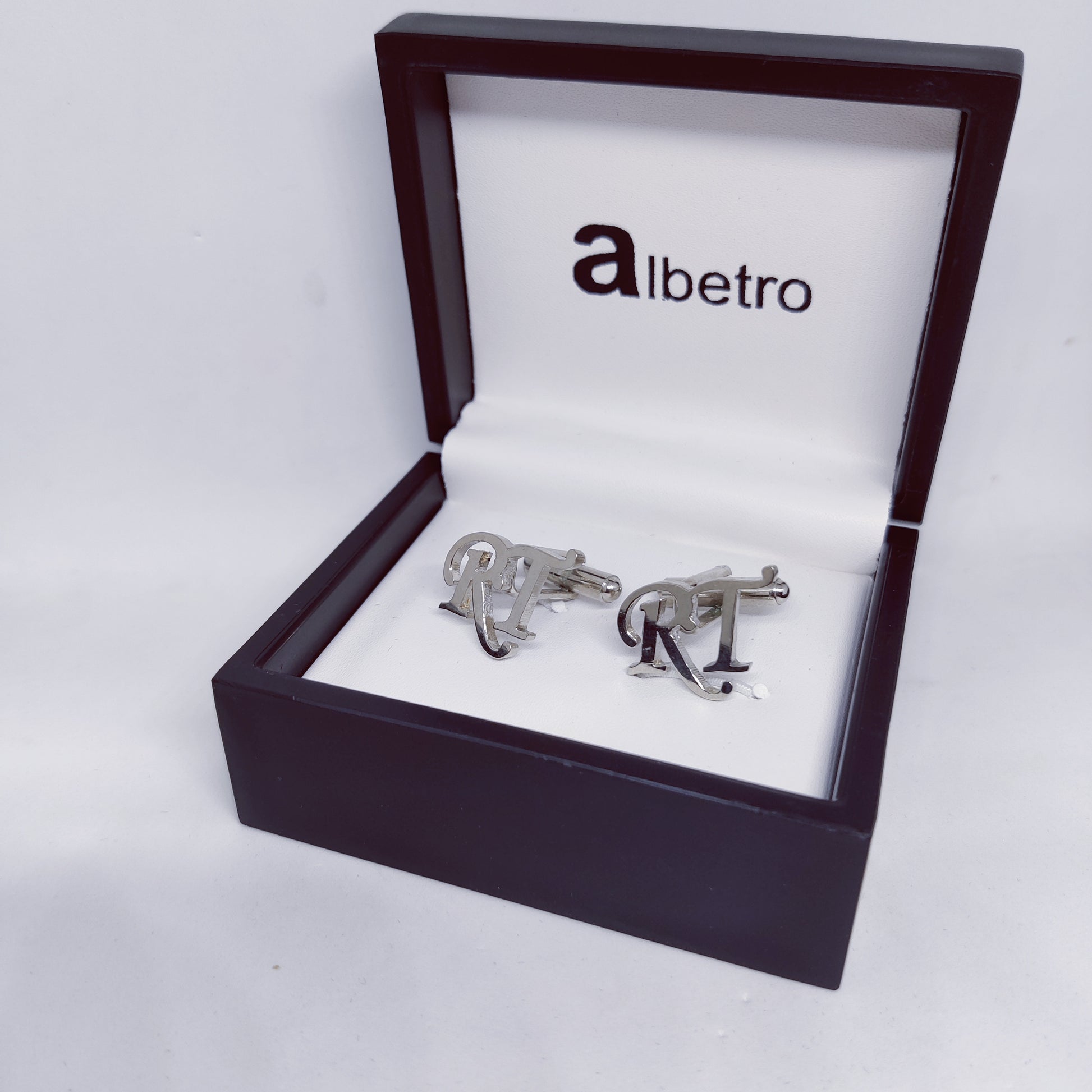 Expertly crafted and refined, our RT Double Initial Cufflinks are made of high-quality brass and are exquisitely silver plated. Add a touch of elegance and sophistication to any outfit with these stunning cufflinks, perfect for any occasion.