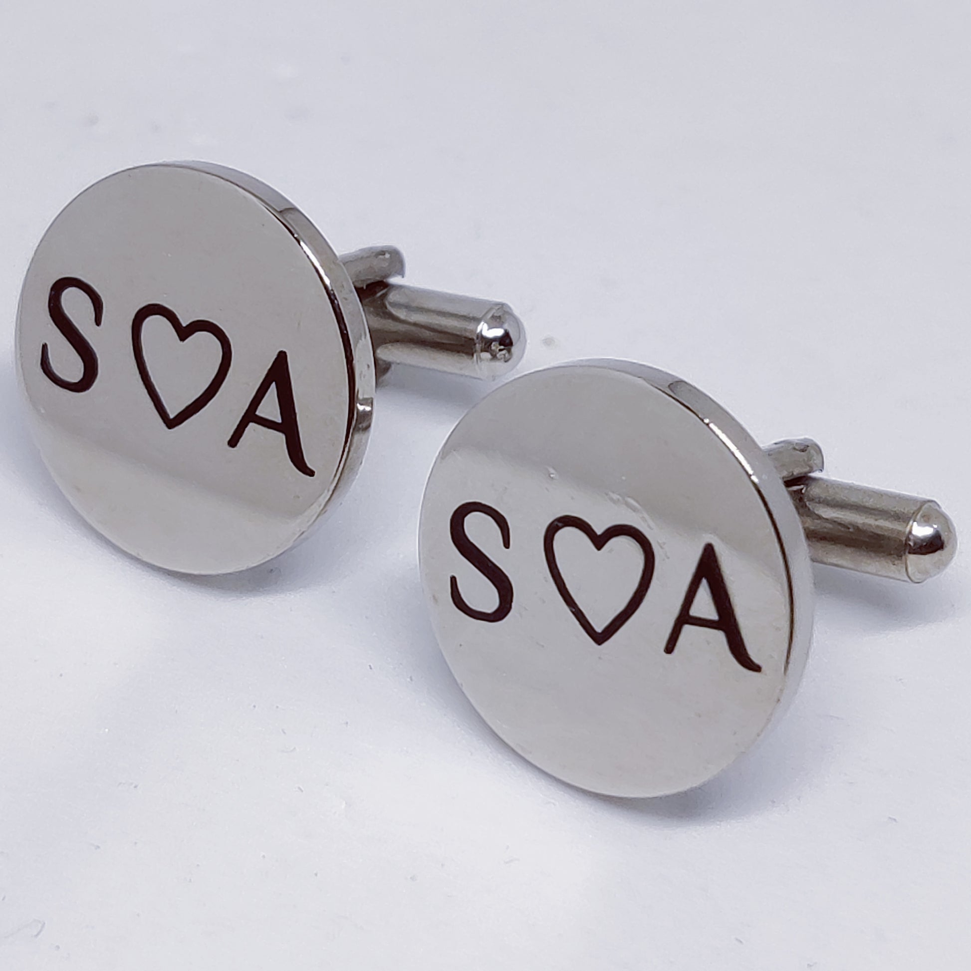 Expertly crafted from brass, these S❤️A Engraved Cufflinks feature a sleek silver electroplating that adds a touch of elegance to any outfit. Perfect for gifting, these cufflinks are the ideal choice for a wedding or anniversary present. Give the gift of style and sophistication with S❤️A Engraved Cufflinks.