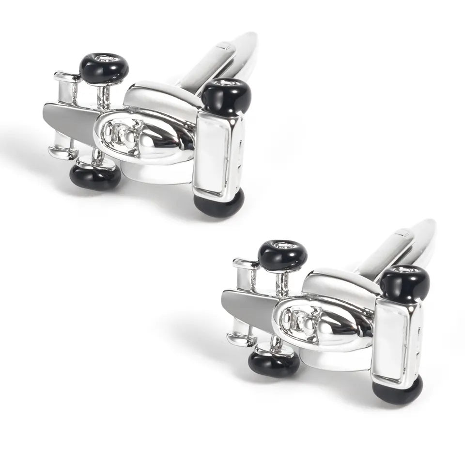 These Silver Racing Car Cufflinks exude confidence and style! Their brass enamel wheels and silver finish will make any suit turn heads. Show your passion for speed and stand out from the crowd with this classic choice.
