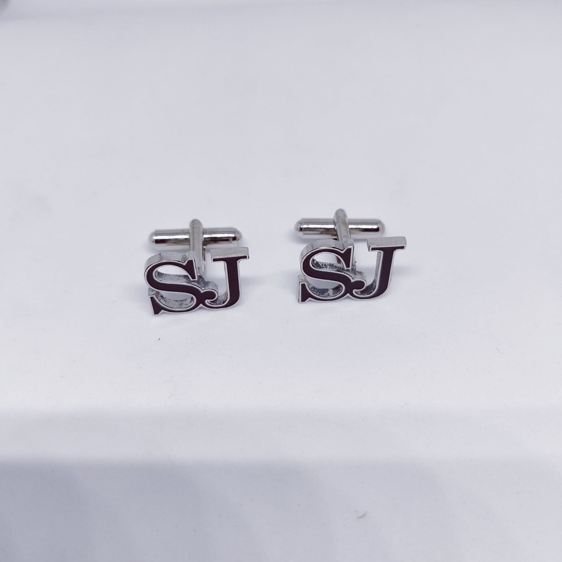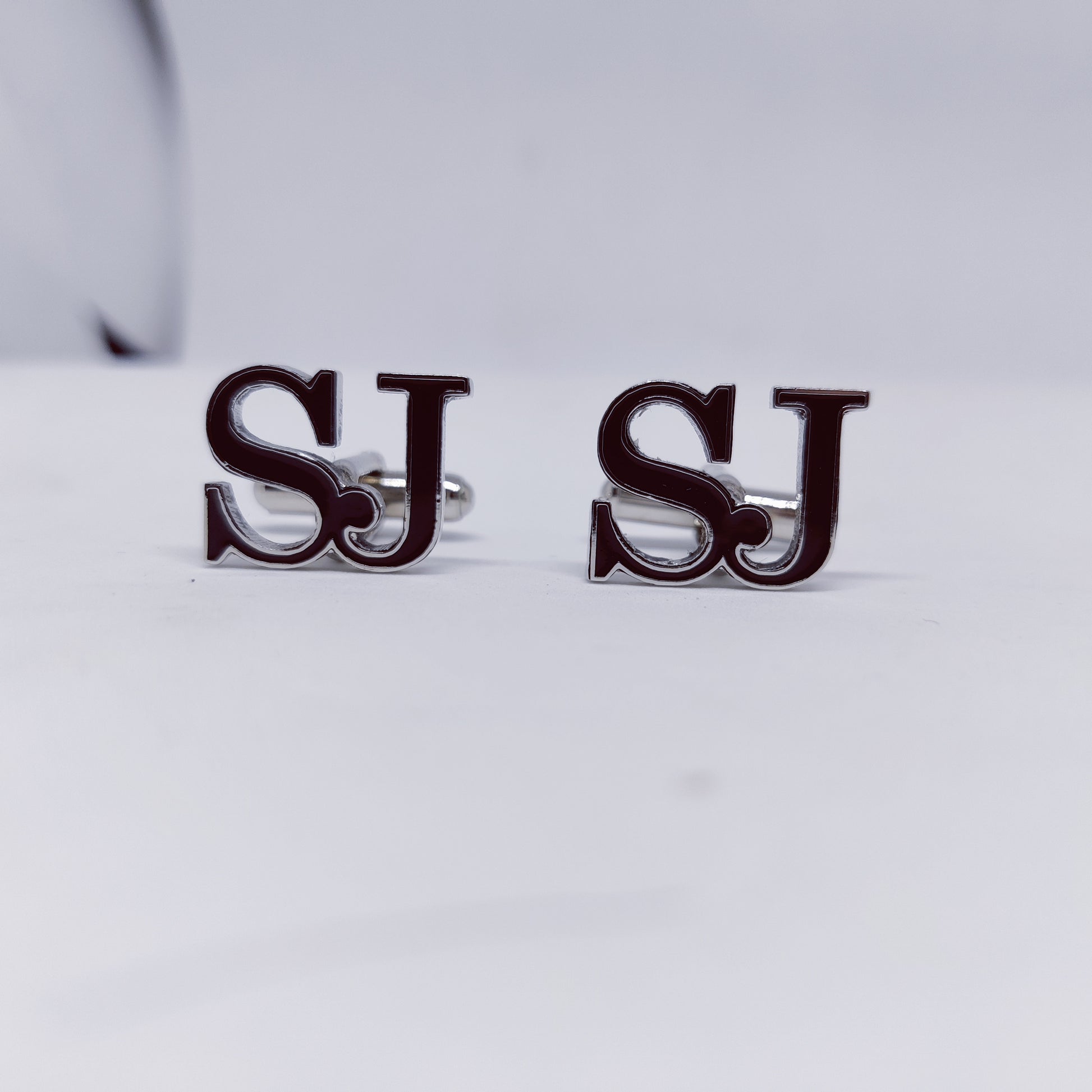 Take charge of your style with SJ Monogram Cufflinks! Crafted with bold brass and silver plating, these cufflinks create a modern twist on traditional with customizable enameled initials. Unlock your bold side and add a touch of daring to your formal look!
