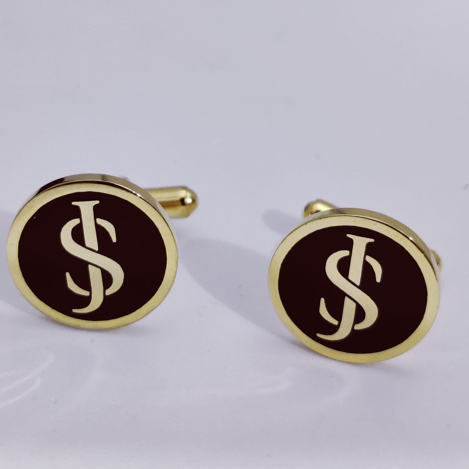 Crafted from high quality brass, these SJ JS Initial Monogram Cufflinks feature a sleek gold plating and subtle black enamel design. Elevate your style with a touch of sophistication and personalization.