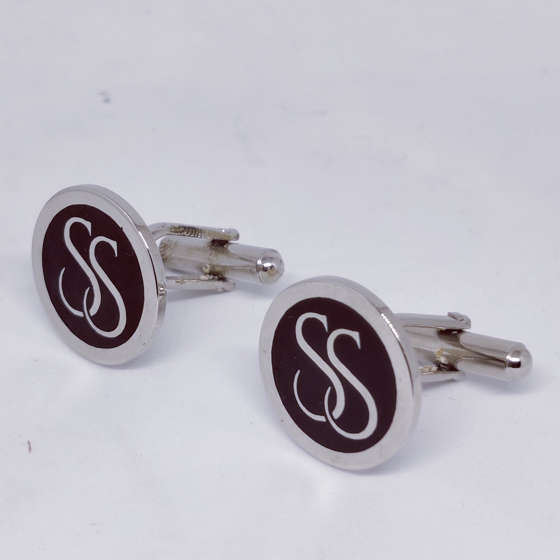 Showcase your initials in style with these SS Initial Monogram Cufflinks. Crafted from brass with a silver electroplating and black enamel finish, these cufflinks provide a sophisticated and classic accessory to any shirt. Make a statement and add a personal touch with these timeless cufflinks.