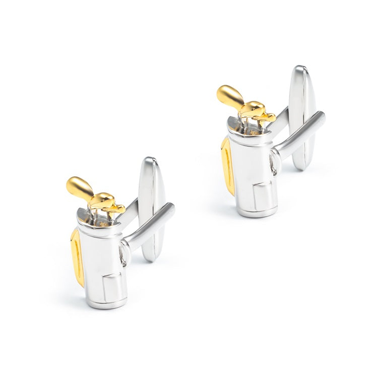 Two Tone Silver & Gold Golf Bag & Clubs Cufflinks