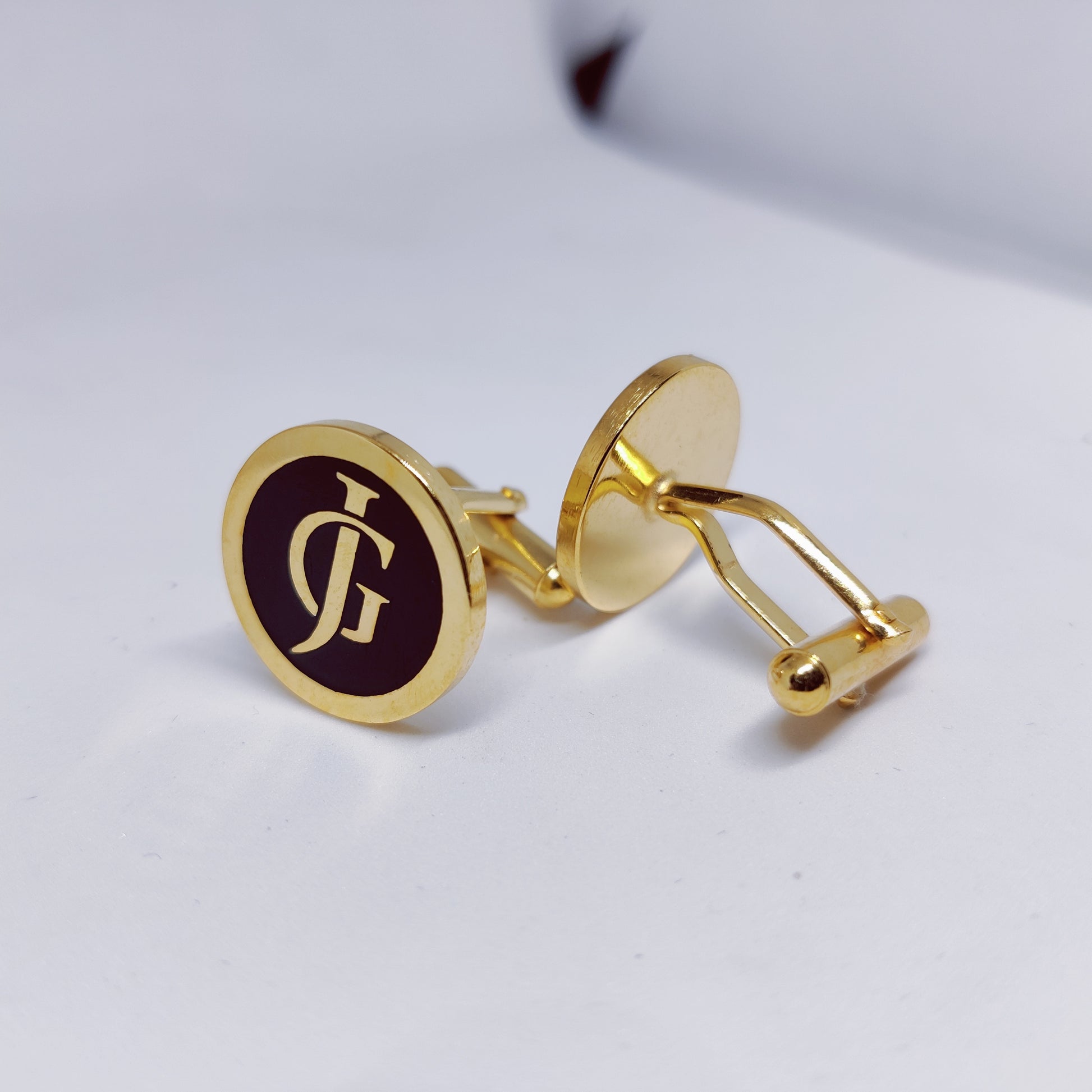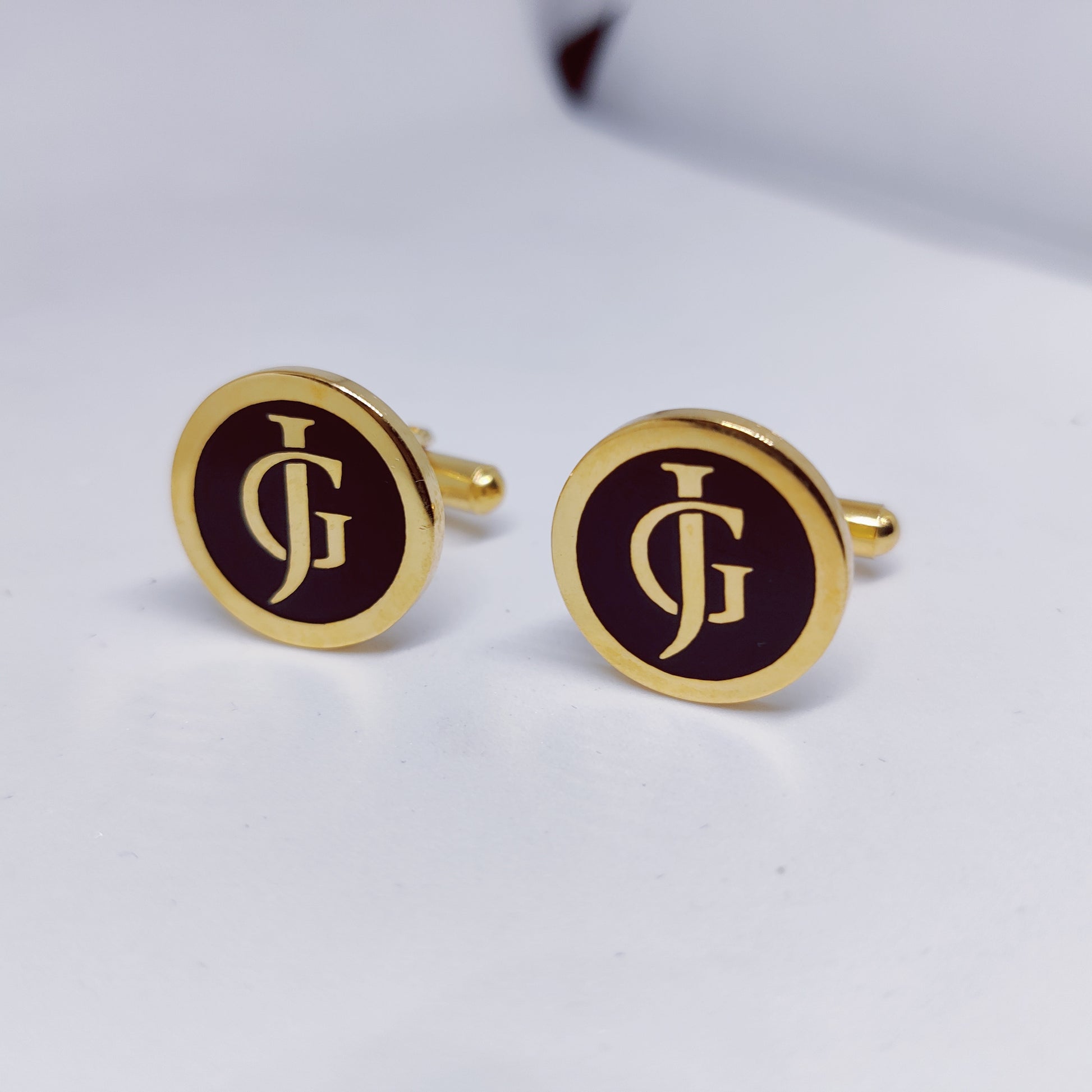 The GJ Initial Monogram Cufflinks are the perfect way to add a touch of sophistication to any outfit. Crafted with black enamel and plated with 18-karat gold, these cufflinks offer a luxurious look for all occasions.