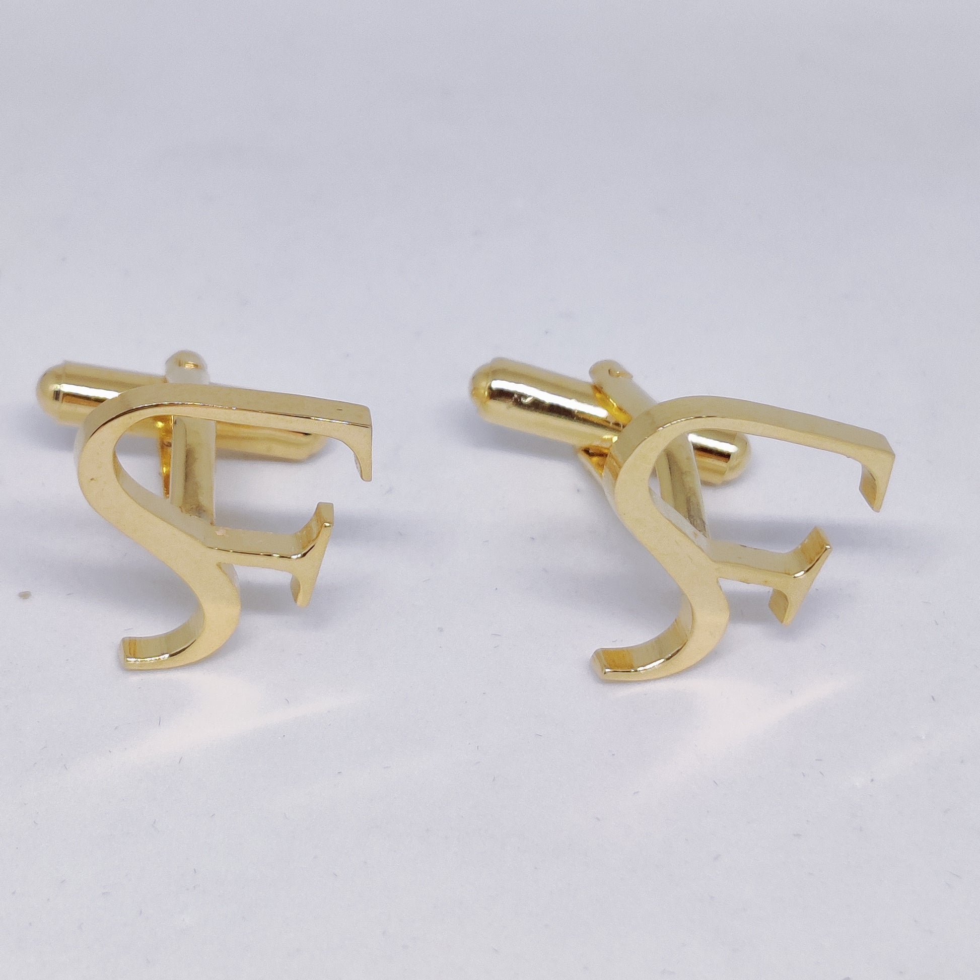 These SF Double Initial Cufflinks are a sleek and fashionable way to add a personal touch to any outfit. Crafted from a brass gold plated material they are sure to last for a long time. The perfect accessory for any special occasion!