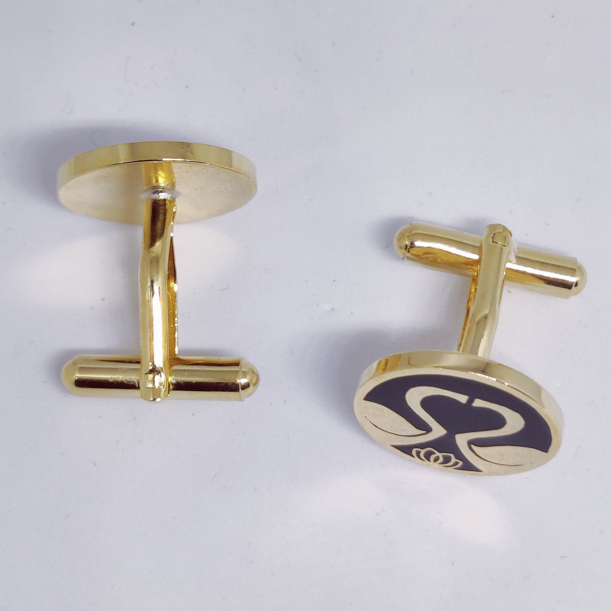 Crafted with brass and coated in a luxurious gold plating, these Swan Enamel Cufflinks add a touch of elegance to any outfit. The durable material ensures longevity, while the intricate swan design showcases a refined taste. Elevate your style with these exquisite cufflinks.