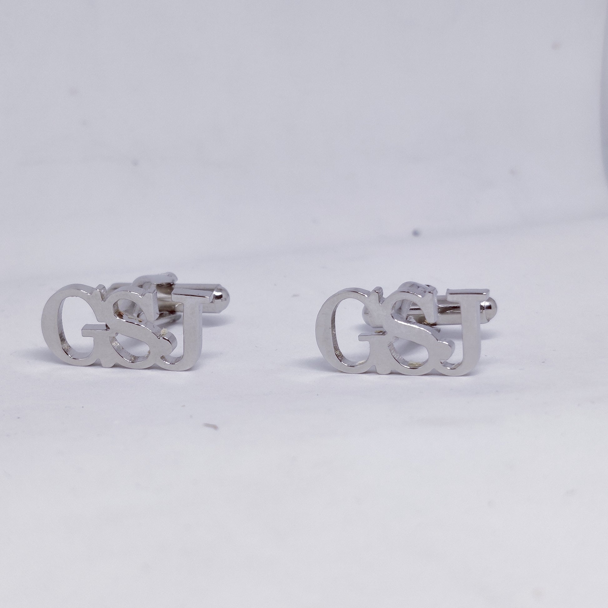 Accentuate your style with these GSJ Triple initial cufflinks. Crafted from brass with silver electroplating, they are the perfect addition to any sophisticated gentleman's wardrobe. Showcase your personality and own every room while looking sharp and handsome. Make a lasting impression and add a touch of class to your style.