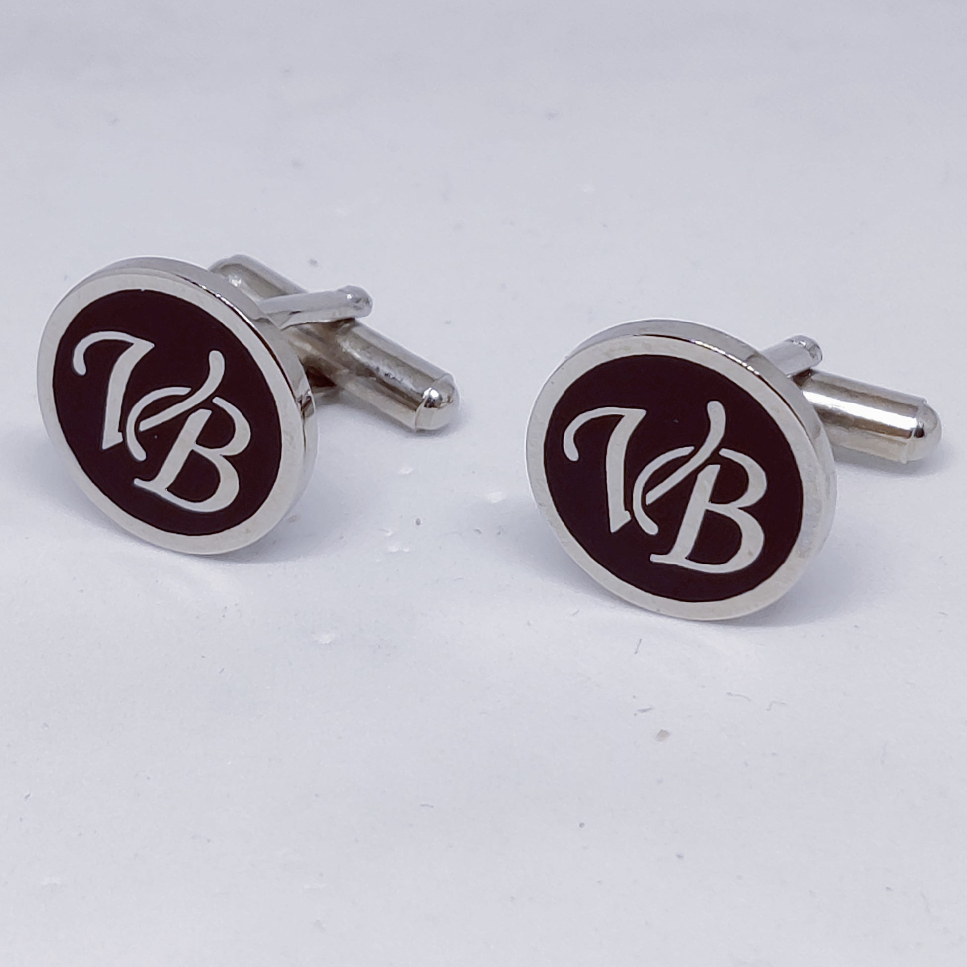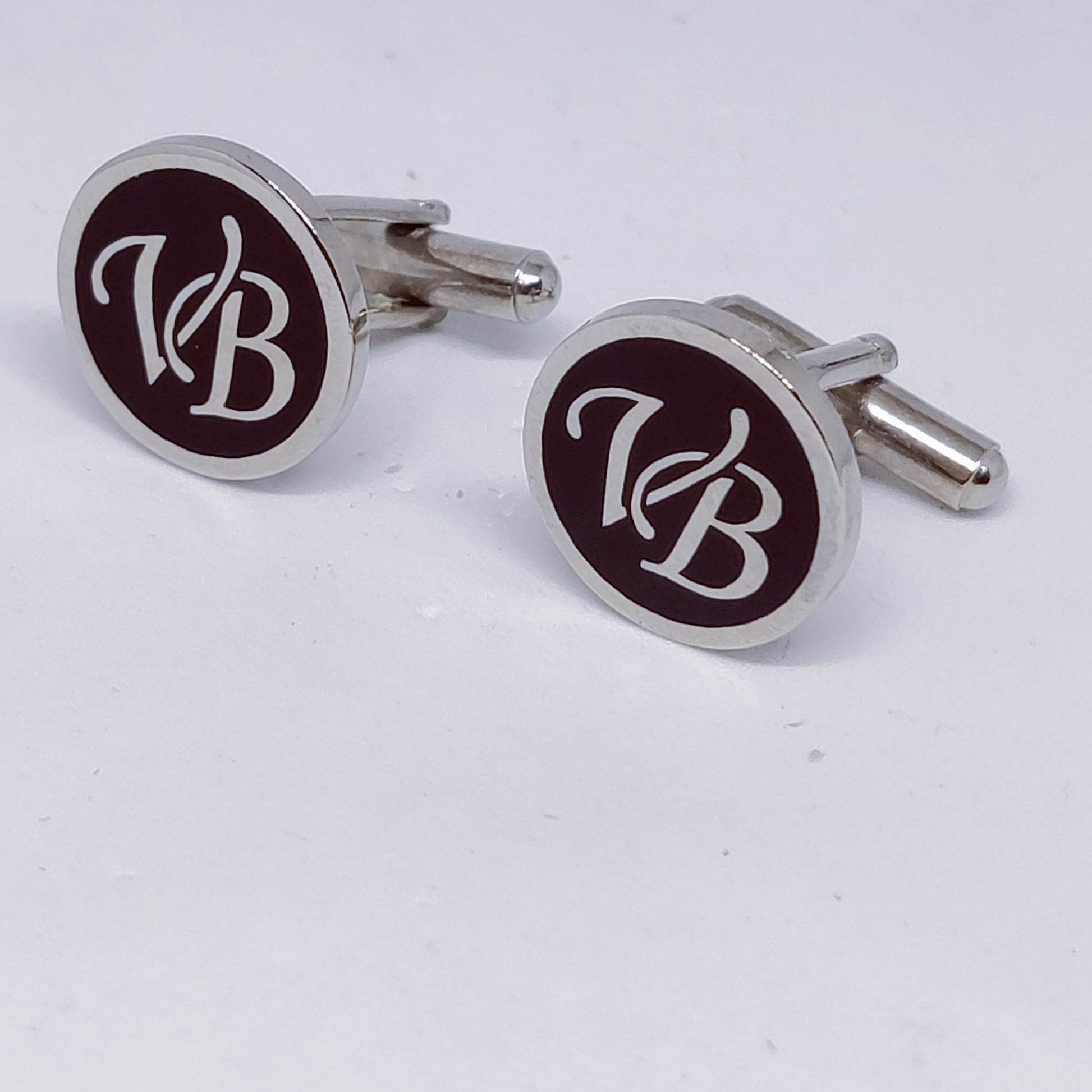 These VB Initial Monogram Cufflinks are made of high-quality brass with a sleek silver electroplating and bold black enamel. The elegant design adds a touch of sophistication to any outfit. Crafted with durability in mind, these cufflinks are sure to make a lasting impression.